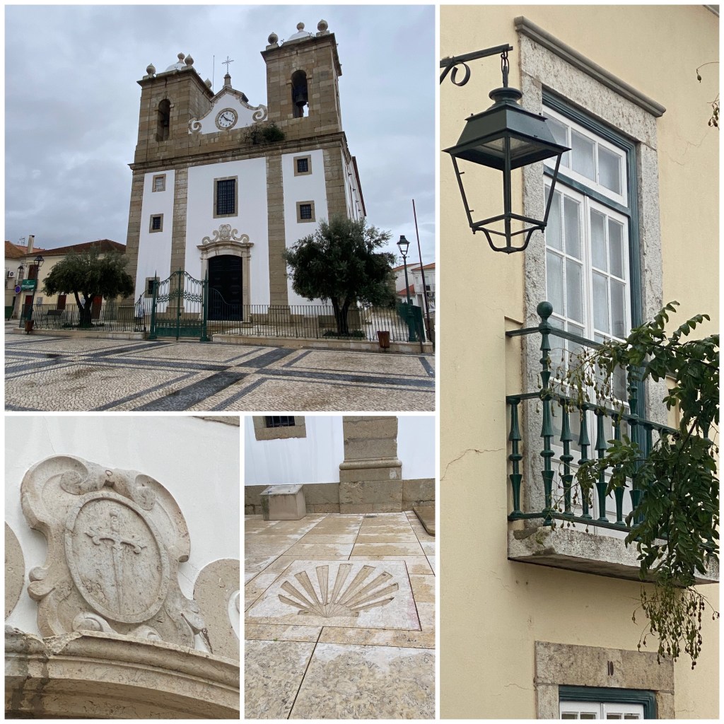 Así llego a Samora Correia, donde hago una última parada en un bar, refugiándome momentáneamente de la lluvia. La iglesia de esta aldea, Nossa Senhora da Oliveira, está vinculada a Santiago y en el exterior luce diversos símbolos jacobeos.