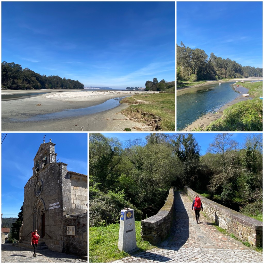 El camino continúa siempre cerca del borde de la ría de Ferrol. De hecho una gran parte de la etapa de hoy consiste en recorrerla tierra adentro hasta poder cruzarla para a continuación reseguir la orilla opuesta hasta volver a estar prácticamente a la altura de la ciudad pero en el otro lado de la ría. Poco después pasamos por el Monasterio románico de San Martiño de Xuvia. Lo que vemos son solo los restos de lo que fue un gran complejo cisterciense cuya fundación se remonta a la Edad Media.