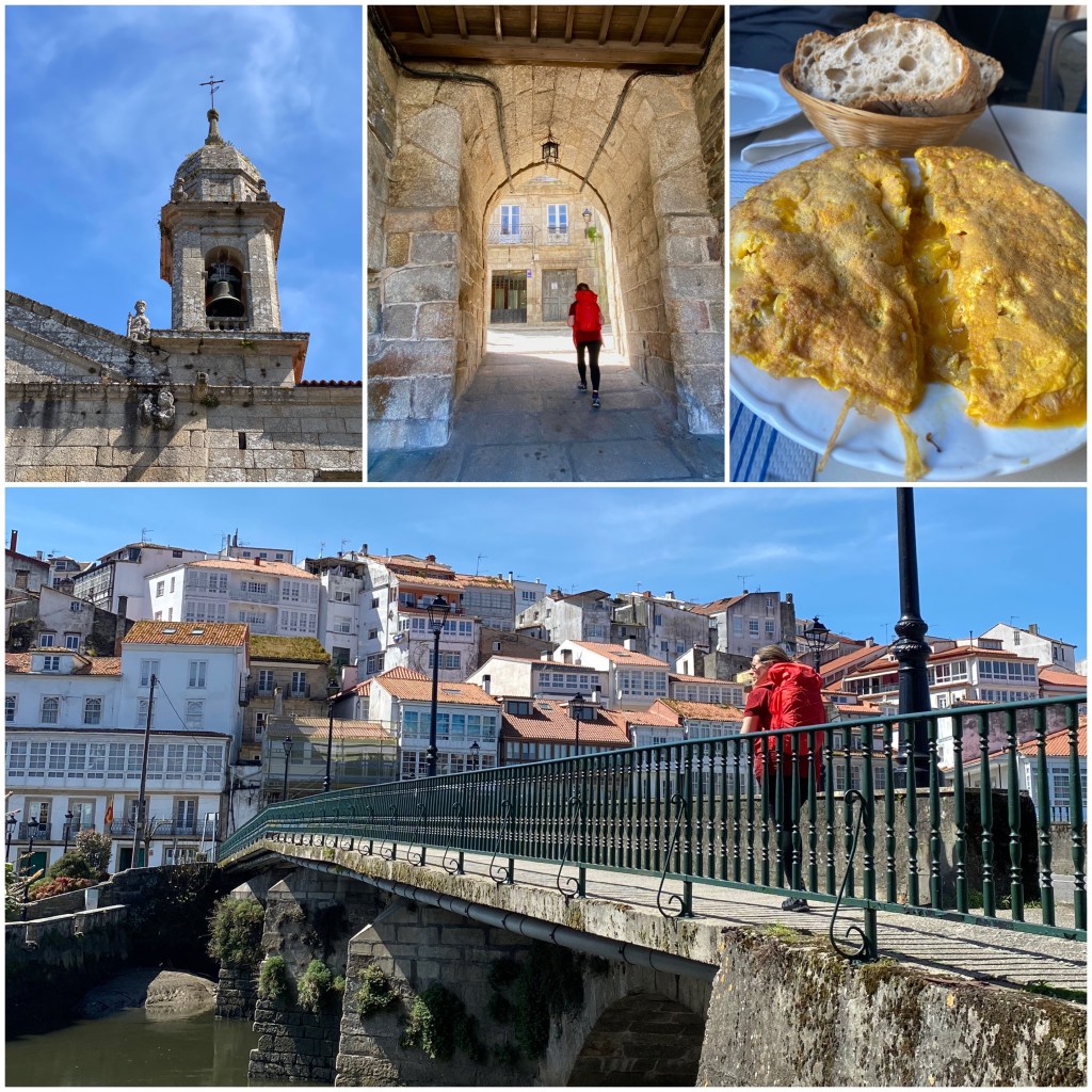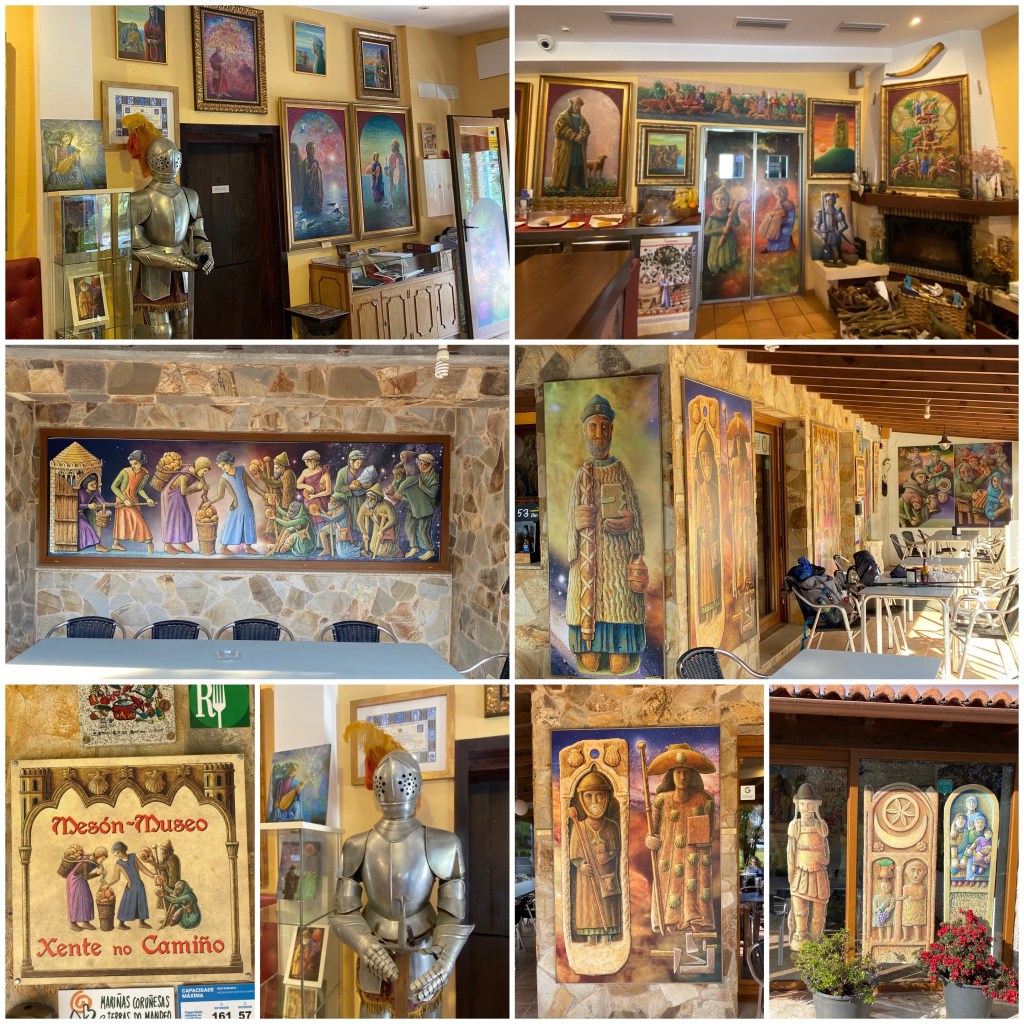 En Presedo paramos a desayunar en el primer bar de la etapa que es el curioso Mesón-Museo Xente do Camiño. Está decorado con pinturas que representan personajes gallegos de la Edad Media realizadas por un erudito en la materia. Y, además, tienen una tortilla de patatas fantástica…