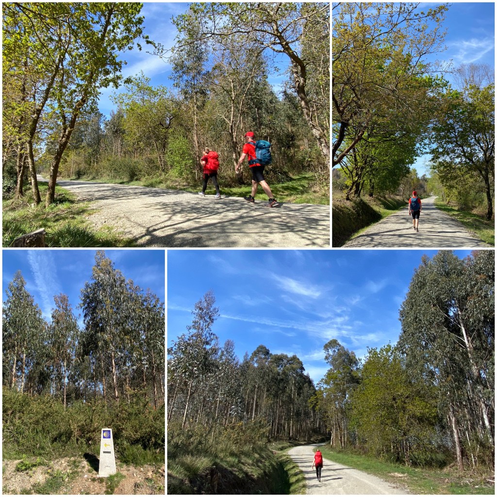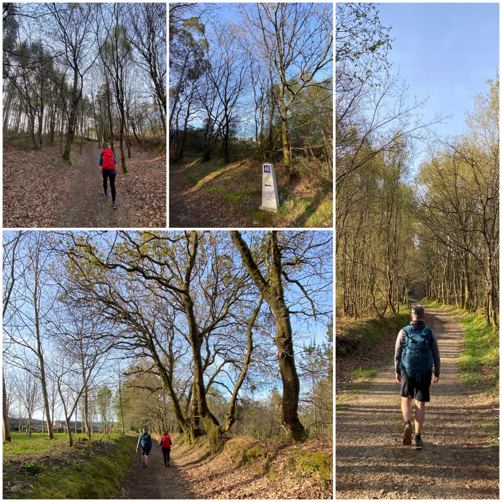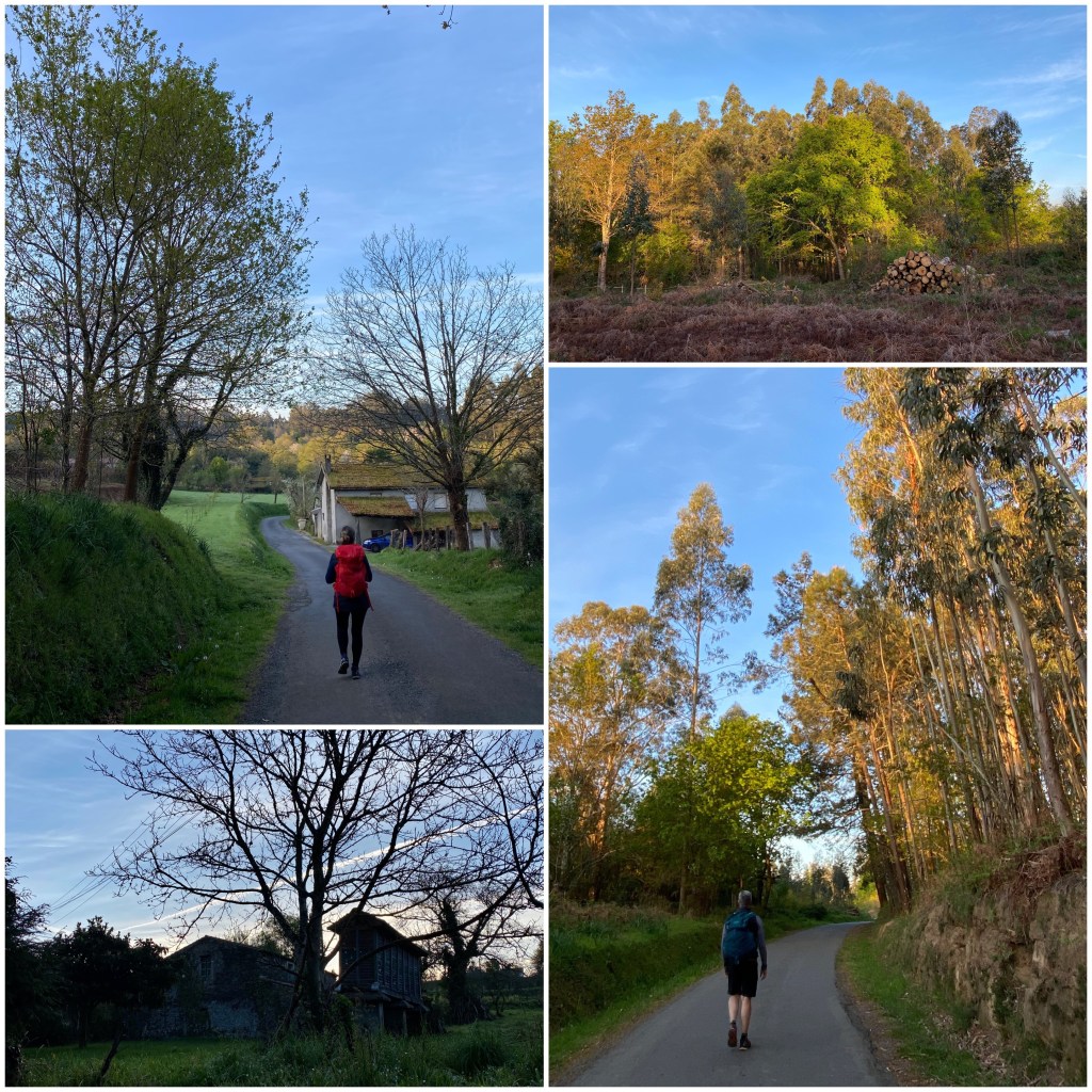 Los últimos kilómetros del día transcurren por carreteritas locales que cruzan minúscula aldeas y, entre ellas, circulan por bosques que combinan eucaliptos y especies autóctonas. Subiendo y bajando constantemente, como es habitual en la orografía gallega de colinas onduladas.