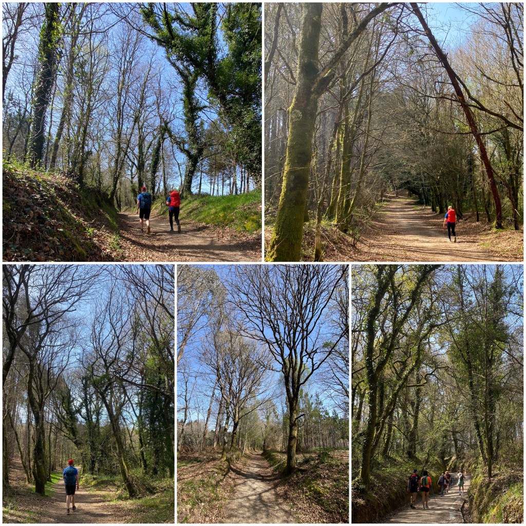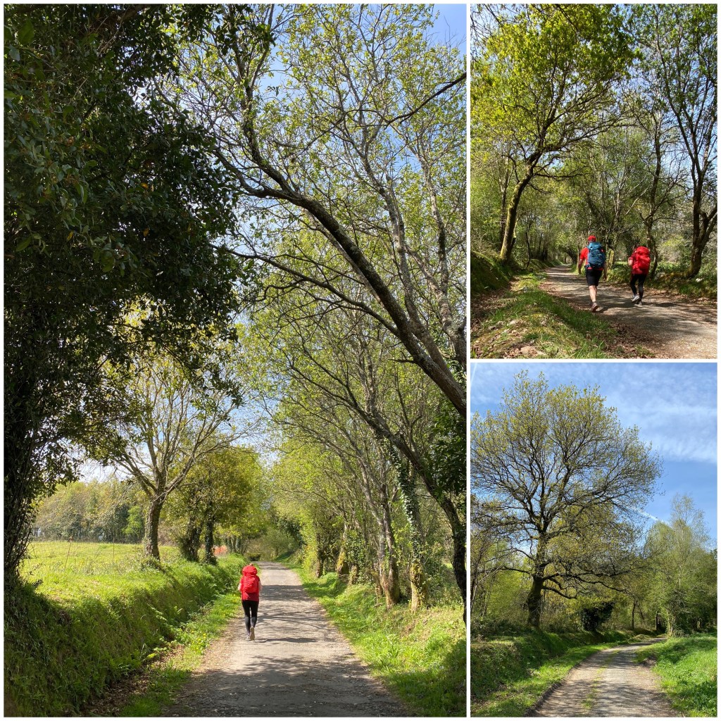 Luego iniciamos el primer tramo en todo el Camimo Inglés desde que salimos de Ferrol en el que se circula por una auténtica corredoira, los caminos tradicionales de carro que unían las aldeas gallegas. Es un sendero precioso entre castaños y carballos.