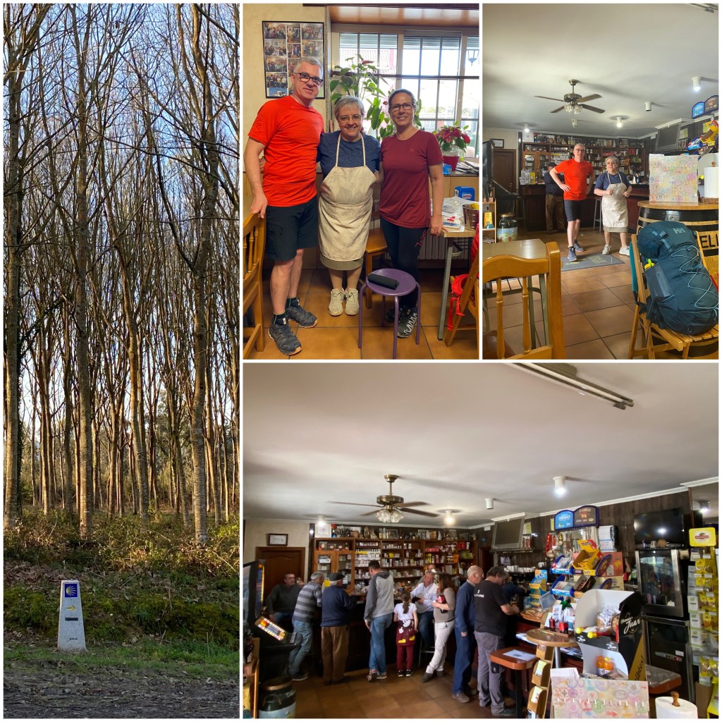 A mitad de la etapa llegamos a La Posada del Peregrino, el primer bar que encontramos desde Sigüeiro y que por esta circunstancia, igual que ayer, es un punto de parada de todos los peregrinos. Reconocemos caras de gente con la que venimos cruzándonos desde que salimos de Ferrol.