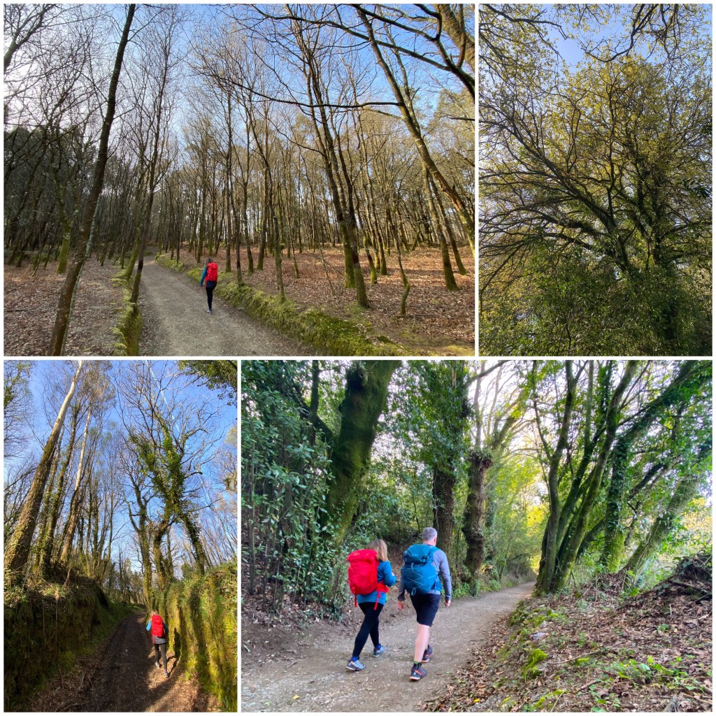 Después dejamos momentáneamente el asfalto para recorrer un sendero precioso por el bosque a través de una carballeira, un robledal.