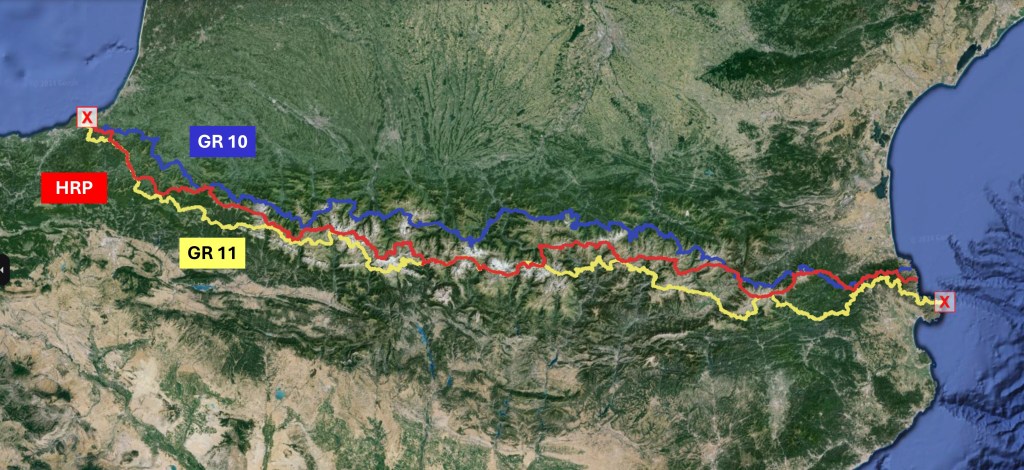 Existe aún una tercera «transpirenaica» que no tiene la consideración de GR homologado y que, al contrario que el GR10 y el GR11, busca unir el Mediterráneo con el Cantábrico manteniéndose lo más cerca posible del eje axial de la cordillera, es decir, de las cimas más altas. Se trata de la HRP, siglas de Haute Randonée Pyrénéenne o Alta Ruta Pirenaica. En algunos tramos la HRP coincide con el GR10 o con el GR11, ya que, aunque discurre mayoritariamente por el lado francés, cruza en ocasiones la frontera.