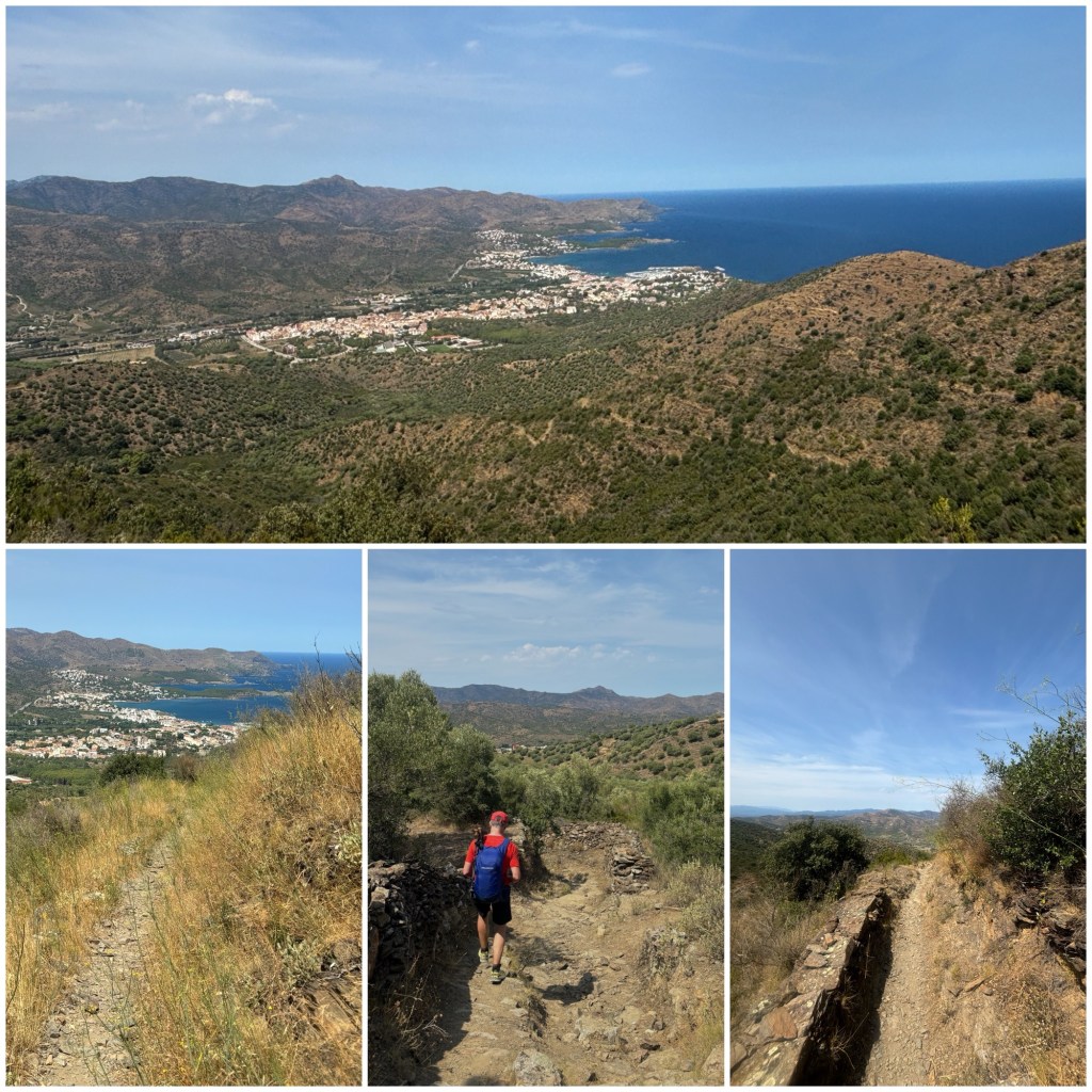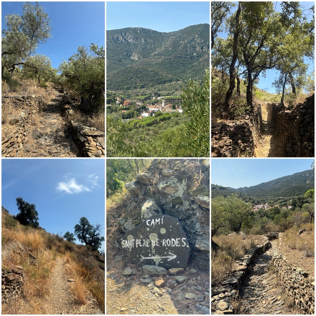 Desde Port de la Selva se inicia la dura ascensión al monasterio de Sant Pere de Rodes. Primero por un camino paralelo a la carretera y luego por un sendero precioso que me lleva al pequeño núcleo de la Selva de Mar donde me detengo brevemente a tomar un café. Desde aquí hasta el monasterio hay que salvar unos 500 metros de desnivel en poco más de tres kilómetros. Hace calor, aunque el viento lo hace más soportable, y es duro, el primer ascenso relevante del GR11, pero los tramos de sendero entre paredes de piedra seca y rodeados de olivos y alcornoques son preciosos.
