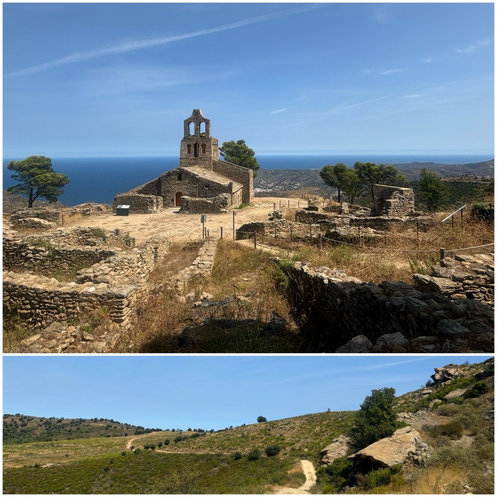 Por donde sí pasa es por los restos del poblado de la Santa Creu y la ermita de Santa Helena, a unos cientos de metros de Sant Pere de Rodes, que es donde habitaban los artesanos, comerciantes y demás personas que daban servicio a la comunidad monástica. Por eso se dice que en este espacio se reúnen tres elementos que representan los puntales de la sociedad feudal: los que rezan, en el monasterio; los que producen, en el poblado de la Santa Creu, y los que luchan, en el castillo.