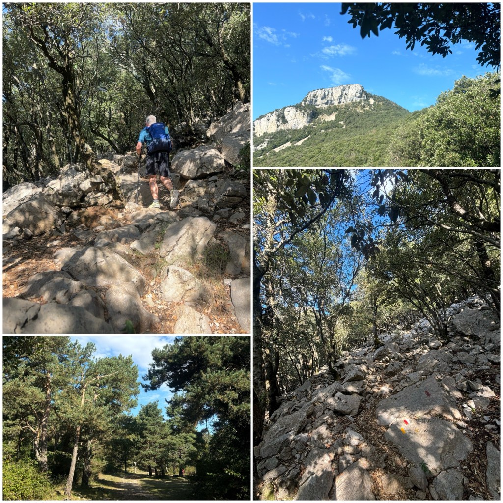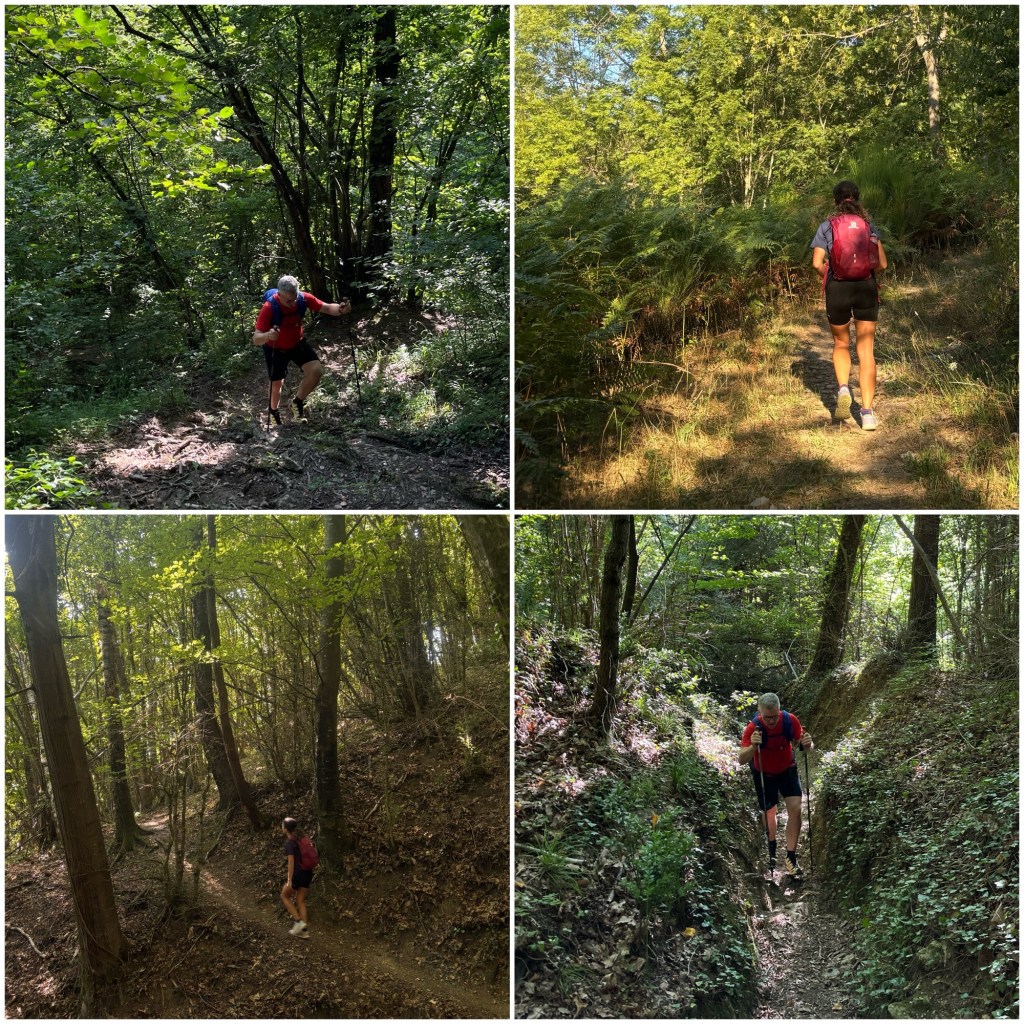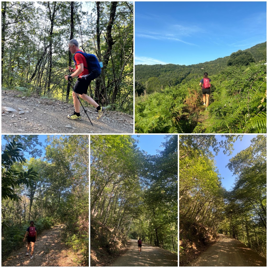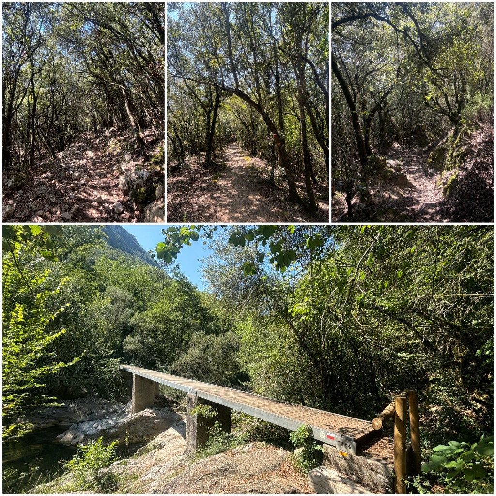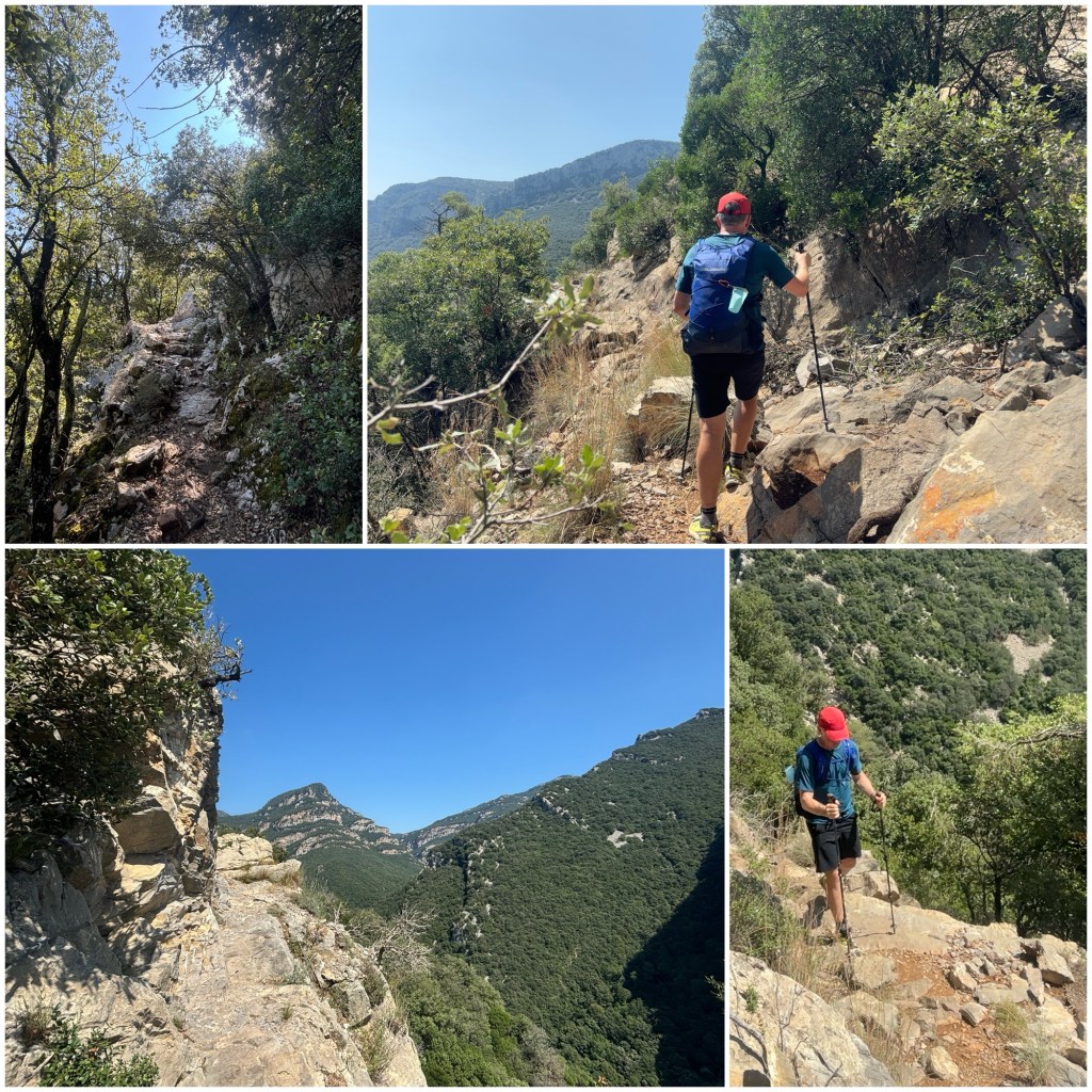 Aunque se desciende levemente, enseguida se empieza la ascensión a un nuevo alto, la Collada de la Trilla. Sin embargo, la subida es mucho más amena, ya que se deja la pista y se hace mayoritariamente por senderos por el bosque que, además de ser más bonitos y más divertidos, están casi siempre en sombra. La diferencia de temperatura es abismal. En este bosque noto como la vegetación poco a poco va cambiando y, por primera vez, además de los alcornoques empiezan a predominar los pinos.