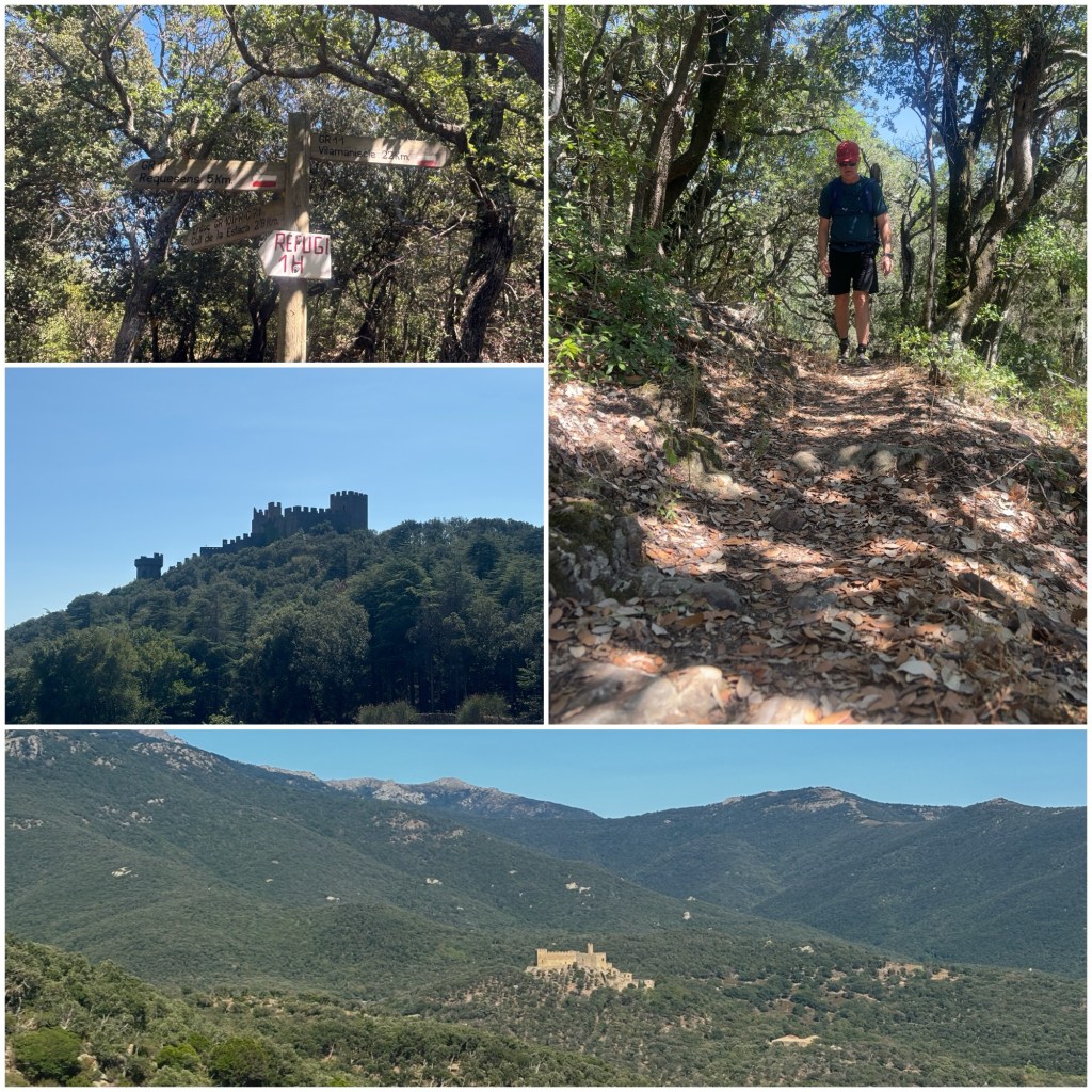 Desde el alto desciendo por un sendero a través de un bosque muy bonito hasta el Mas de Mirapols, una masía abandonada, y sigo luego varios kilómetros por una pista forestal hasta las cercanías del castillo de Requesens, de origen medieval y cuya situación se explica por ser un territorio tradicionalmente de frontera y a la cercanía de los collados del Pertús y de Banyuls para atravesar la cordillera.