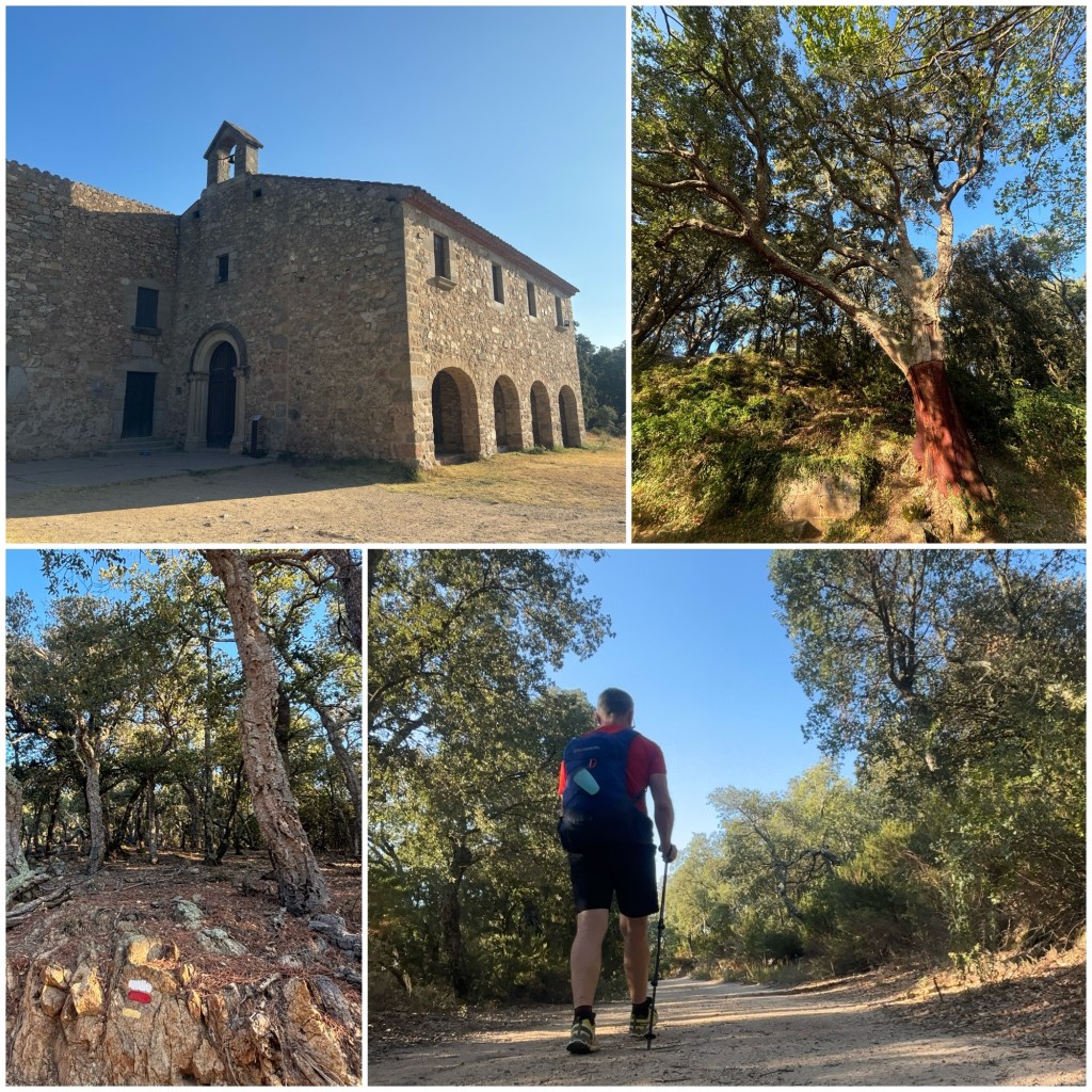 Al descender del collado se pasa por la ermita románica de Sant Silvestre de Velleta, aislada entre alcornoques, y luego se asciende al último puerto del día, el pequeño Coll de La Serra, desde donde solo quedan un par de kilómetros hasta Vilamaniscle, un tranquilo y discreto pueblo del interior del Alt Empordà que ya se ve a mis pies, con una barrera de montañas más imponentes que las de hoy como telón de fondo y que espero atravesar en los próximos días.