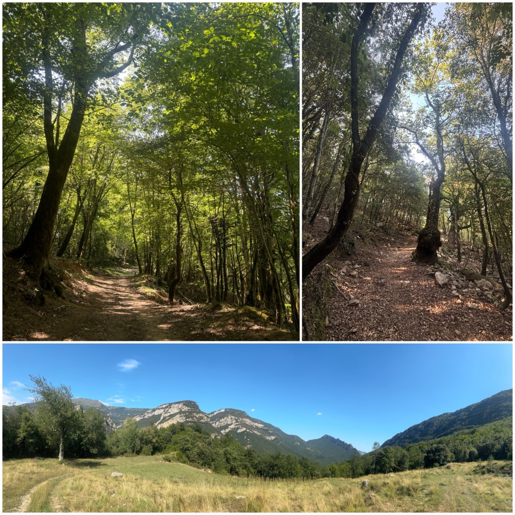 A partir de aquí cruzamos una zona de pastos, y me doy cuenta de que es la primera vez desde que salí del Cap de Creus que veo este tipo de paisaje, típicamente pirenaico. Realmente en la etapa de hoy se percibe claramente la transición entre el bosque mediterráneo y un paisaje más alpino. Poco después llegamos al segundo puerto del día, el Collet de la Costa.