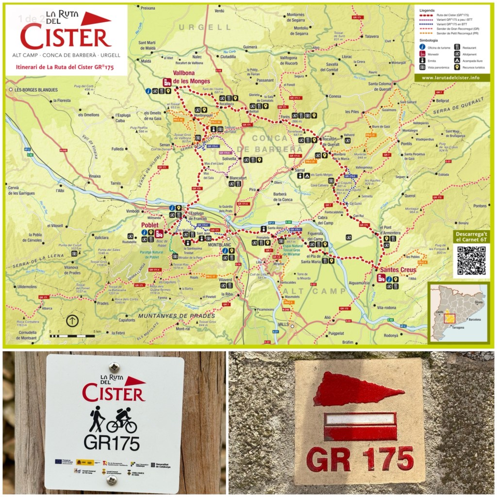 El GR175, conocido como la Ruta del Císter, es un itinerario de senderismo circular que conecta tres importantes monasterios cistercienses de Cataluña: Santes Creus, Vallbona de les Monges y Poblet. Recorre las comarcas del Alt Camp, Conca de Barberà y Urgell, mayoritariamente en la provincia de Tarragona, con una breve incursión en la de Lleida. La ruta está pensada para hacerla tanto a pie como en bicicleta (BTT), y tiene una variante para cada modalidad. En la web oficial se propone repartir los aproximadamente 105 kilómetros del GR175 en 3, 4 o 5 etapas a pie. En mi caso los he dividido en tres, siendo el primer intento que hago de realizar una ruta senderista de varios días tras retirarme hace siete meses en la undécima etapa de la Transpirenaica por problemas en la rodilla derecha, que resultó ser una condropatía rotuliana en grado 4, un desgaste casi total del cartílago.