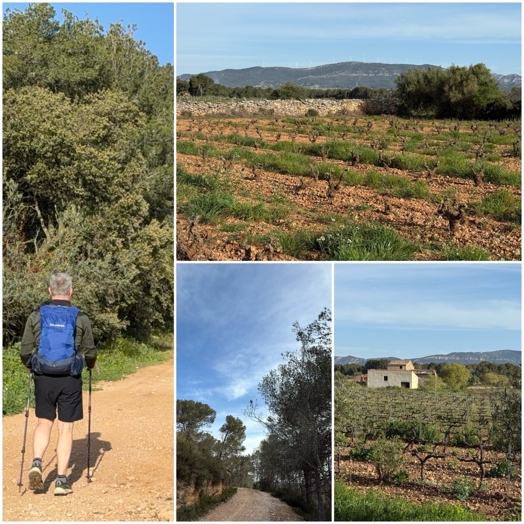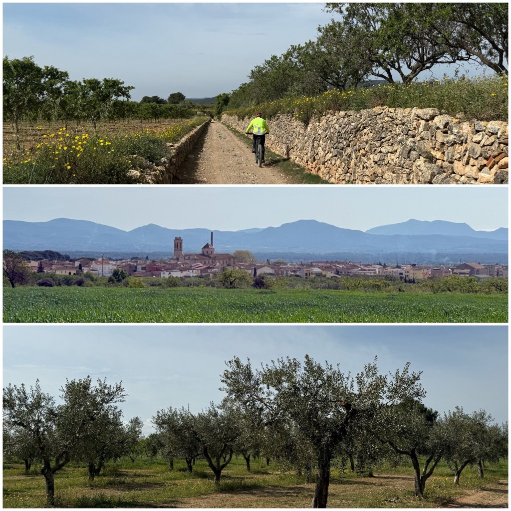 Ahora el terreno ya es mucho más llano, una vez cruzada la sierra de Miramar. Recorro por caminos de tierra los siguientes siete kilómetros, atravesando mayoritariamente zonas de viña, empleadas para la producción de vinos de la denominación de origen Conca de Barberà, nombre de esta comarca, a cuya capital, Montblanc, me dirijo a continuación.