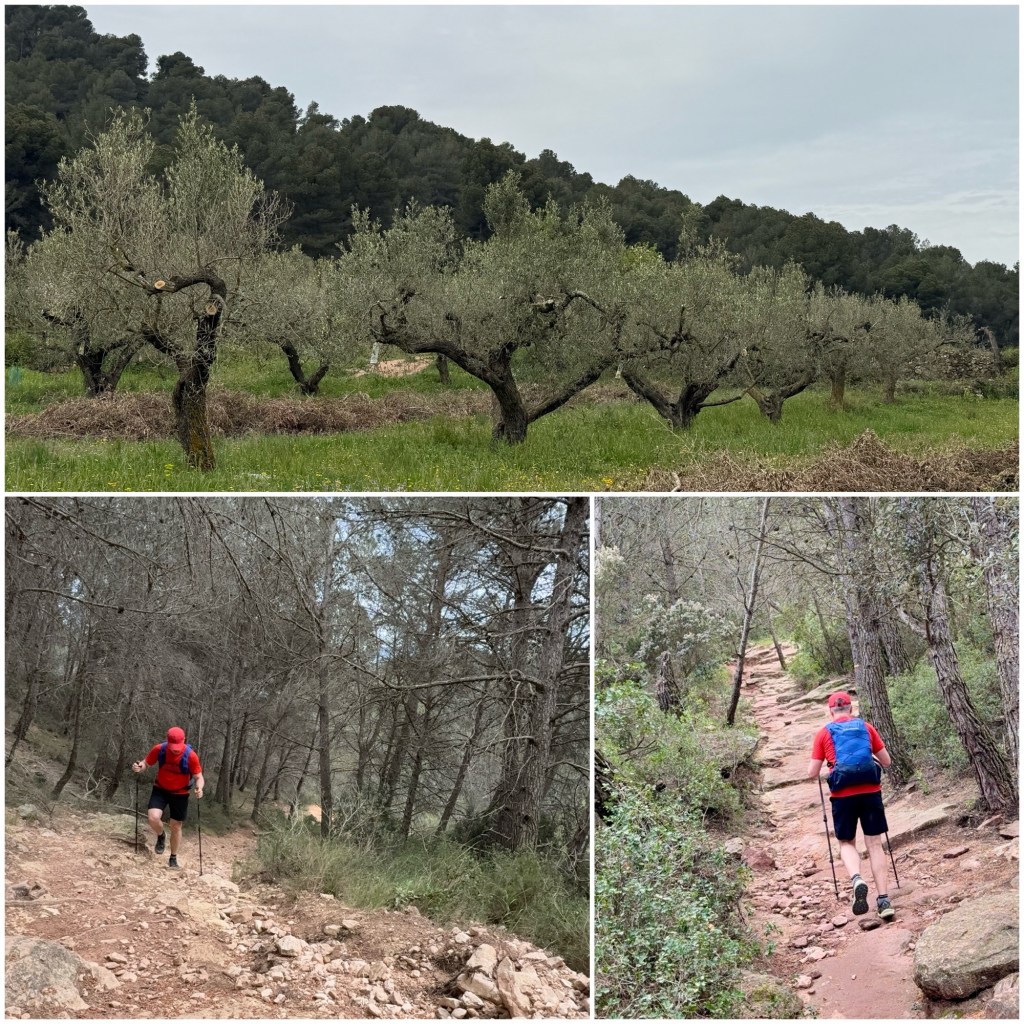 A la salida de Montblanc tomo una pista entre olivos y viñas, que mas adelante se convierte en un sendero que empieza a ascender por un bosque, ya que tengo que salvar el último obstáculo del día, las montañas de Prades, otra sierra que, igual que la de Miramar, forma parte de la Cordillera Prelitoral Catalana.