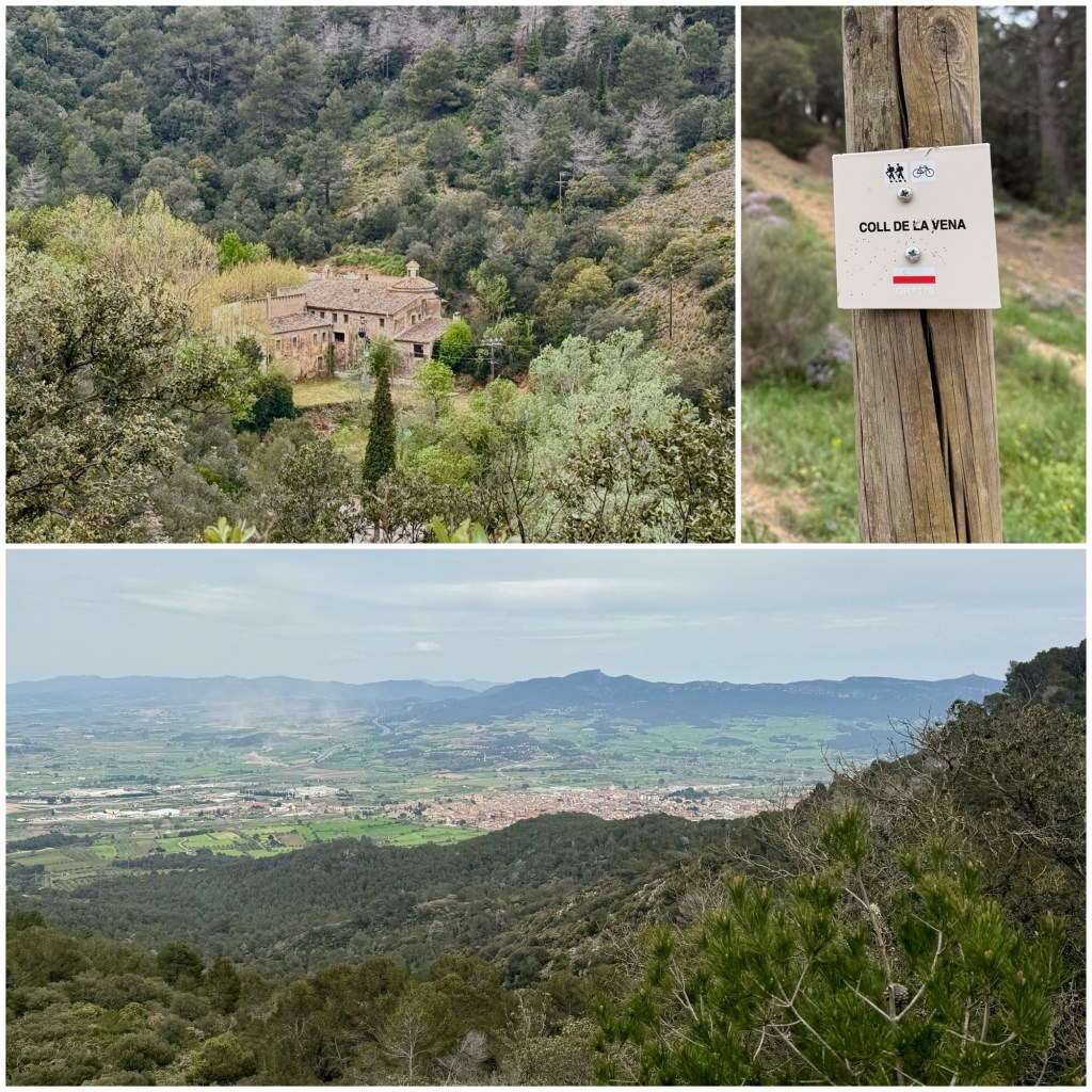 Figuerola está situada en el límite de la llanura que he recorrido desde que he iniciado la etapa, y a los pies de la Sierra de Miramar, que he de atravesar a continuación. Esta sierra forma parte de la Cordillera Prelitoral Catalana, el conjunto de montañas paralelas a la costa, pero a una distancia de entre 30 y 60 kilómetros del mar, que recorren toda Cataluña de norte a sur. Para cruzarla sigo un camino forestal que asciende entre bosques de pinos, hasta alcanzar el Coll de l’Era del Caterí, un primer collado de 741 metros de altitud. Desde aquí desciendo ligeramente para, a continuación, iniciar una nueva subida por un sendero que me deja en un segundo y definitivo alto, el Coll del Faló.