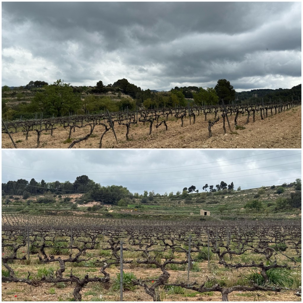 Después de comer un bocadillo en el primer bar que encuentro desde que he empezado la etapa, prosigo, bajando suavemente por senderos y pistas de tierra, hacia el siguiente pueblo, Montbrió de la Marca. Ahora que estoy en la parte más llana de la comarca, vuelven a predominar las viñas de la denominación de origen Conca de Barberà. Aun así el terreno, aunque desde las alturas parece una llanura agrícola, realmente de cerca no es llano sino que son suaves colinas que suben y bajan constantemente.