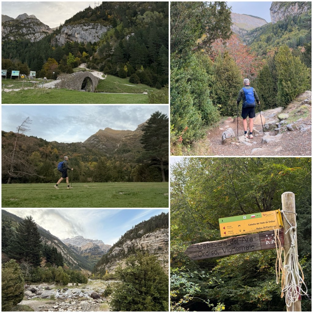 Más tarde cruzo por última vez el Ara, el río que he ido remontando desde ayer en el Puente de los Navarros, y que nace cerca de aquí. En este punto el sendero que iba siguiendo continúa rumbo norte hacia el cercano Puerto de los Mulos, por donde se cruza a Francia. El GR11, por su parte, gira hacia el oeste y continúa por un valle lateral dirigiéndose a otro puerto, el de Brazato.