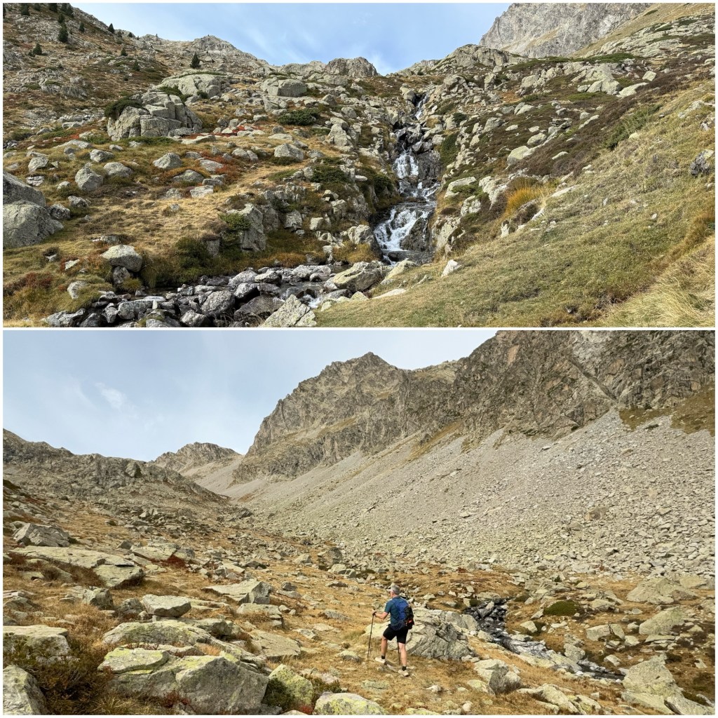 Mientras un par de marmotas me observan, afronto la últimas rampas por un canchal. Aquí el terreno es granítico y hay las mismas aglomeraciones de piedras que tanto abundaban en Aigüestortes.