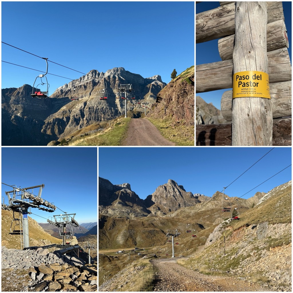 Más arriba sigo por una pista de tierra que sube en zigzag hacia la parte alta de la estación y que probablemente en temporada de nieve sea la típica pista de esquí azul. Frente a mí tengo el Pico Aspe y otras peñas rocosas.
