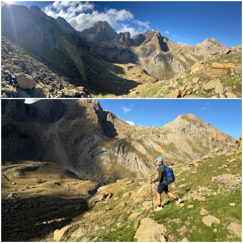 El descenso no dura mucho, ya que apenas se pierden 300 metros de desnivel, y me lleva al Circo de Aspe, un espectacular anfiteatro de rocas.
