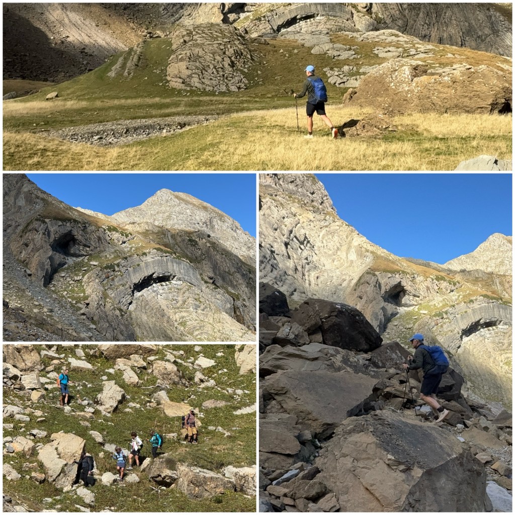 Desciendo hasta el fondo del Circo y me detengo un rato a descansar y a comer unas galletas. Enfrente tengo el collado que he de remontar a continuación, aunque como en otras ocasiones, de entrada no se entiende muy bien por donde hay que subir. Parece que no haya ningún paso sin tener que escalar, hasta que veo un grupo bajando y visualizo mejor el itinerario.