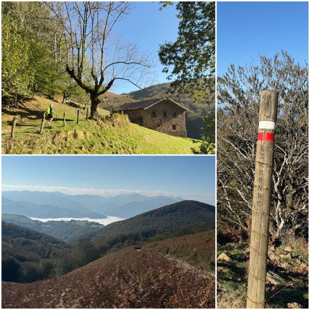 Los siguientes kilómetros sigo una pista que serpentea entre los montes de estas últimas estribaciones de los Pirineos, mayoritariamente descendiendo hacia el valle del Bidasoa, excepto por algún repecho puntual.
