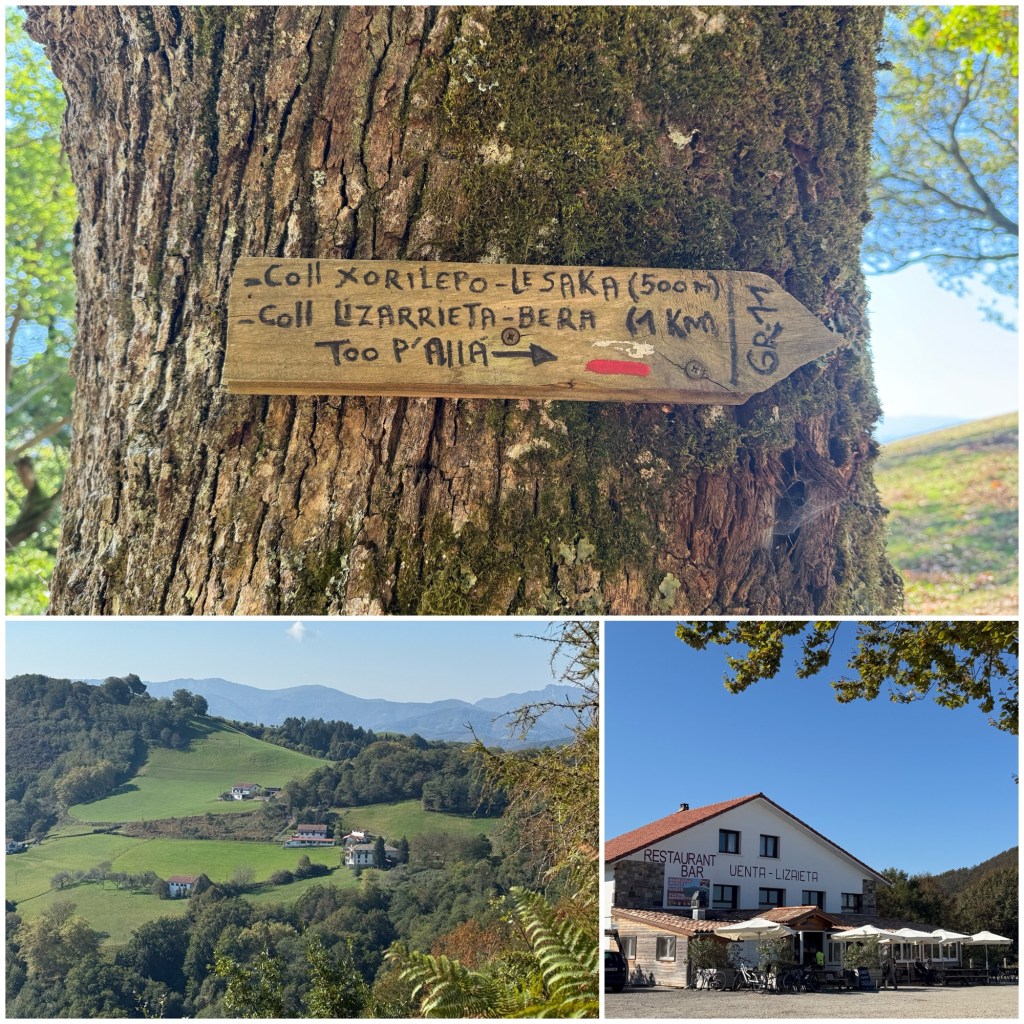 Más adelante circulo durante unos cientos de metros por territorio francés en el Collado de Lizarrieta, por donde pasa una carretera. Antiguamente, en alguna de las etapas aragonesas, el GR11 tenía tramos que pasaban por Francia pero se ha ido modificando el recorrido para que todo el trazado caiga en territorio español (o andorrano). Esta cortísima incursión es la única que queda actualmente en territorio galo en todo el GR11 y tiene la ventaja de que permite pasar por los dos bares que hay en el collado junto a la carretera. En uno de ellos paro a descansar un rato.