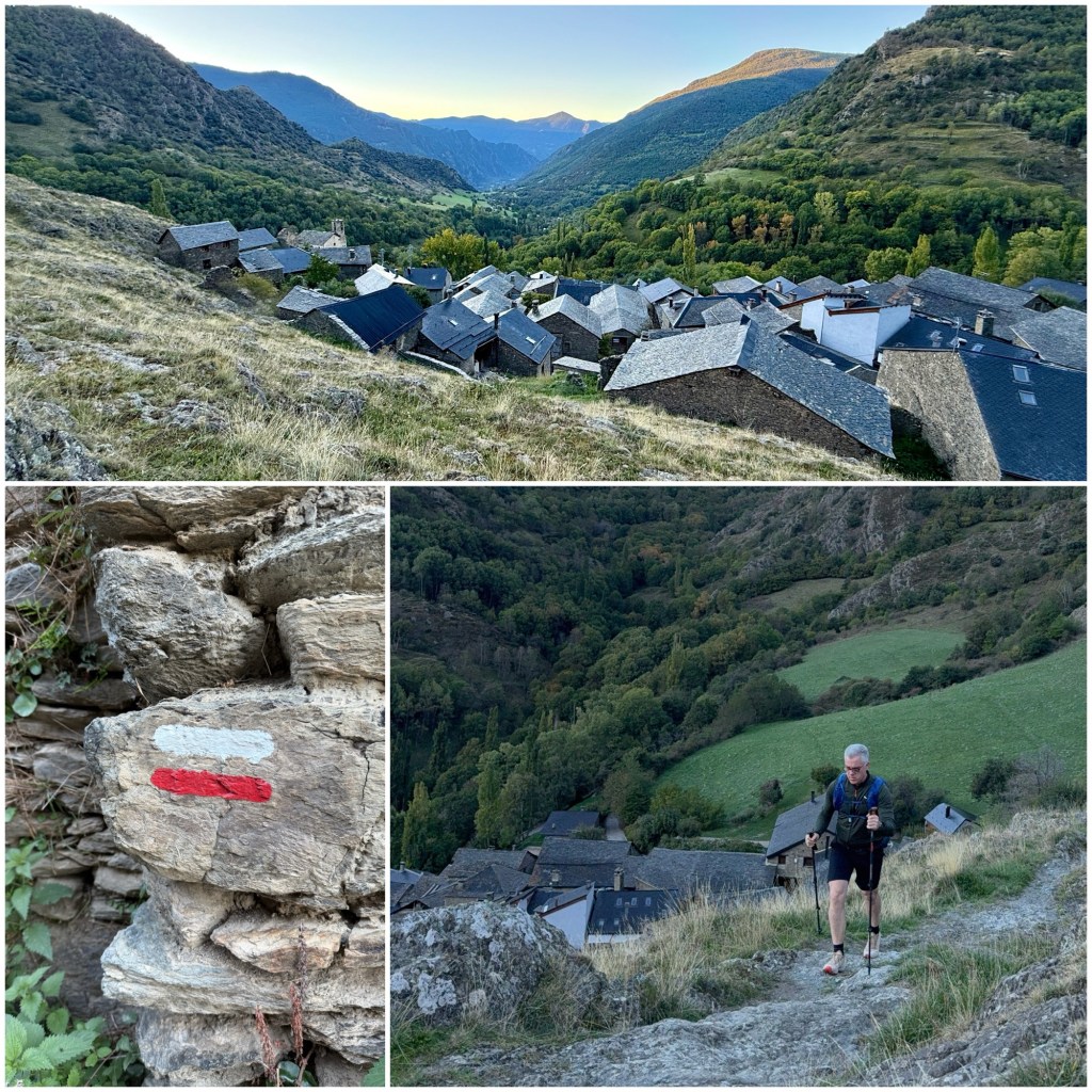 Un año y un mes después de retirarme del GR11 en Estaon, regreso al mismo núcleo del valle de Cardós para retomar la ruta donde la dejé. Aquella historia acabó en dos lesiones: una condromalacia rotuliana de grado 4 en la rodilla derecha y una rotura parcial de un tendón en el hombro izquierdo. La segunda está del todo superada, o así lo espero, pero la primera, la de la rodilla, es un desgaste que no tiene recuperación posible, solo mejoras parciales, pero creo estar suficientemente preparado como para intentarlo de nuevo. Así que, sin saber muy bien hasta donde podré llegar, inicio desde este pequeño y remoto pueblo la decimosegunda etapa de mi GR11.