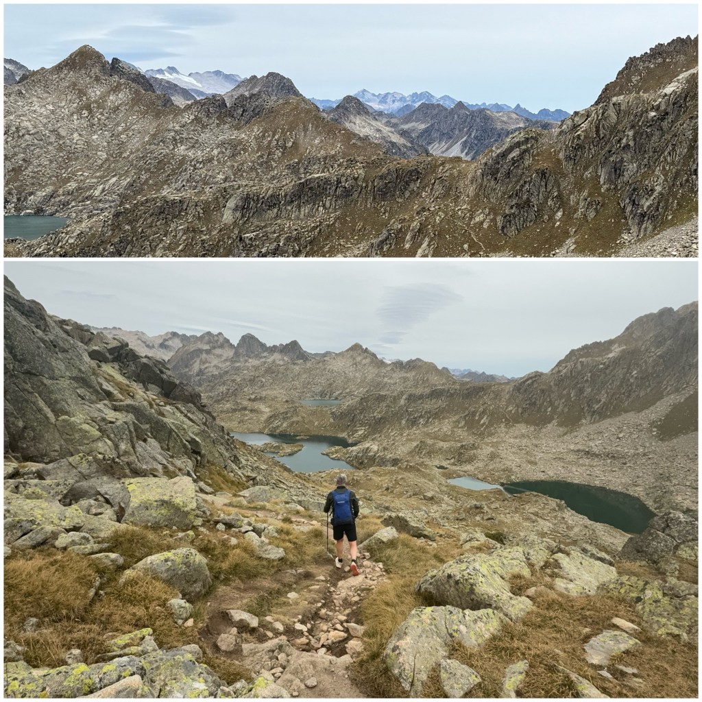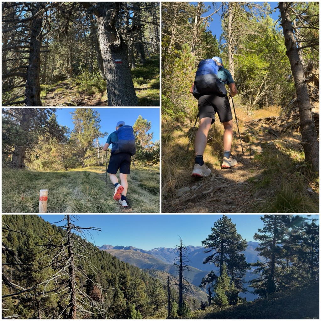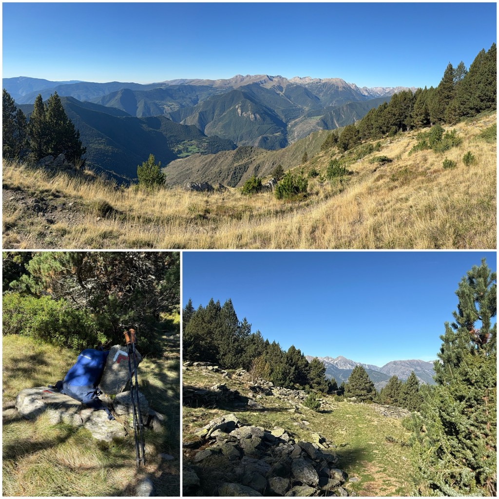 El ascenso se hace duro, son 932 metros de desnivel en 4,4 kilómetros, prácticamente un ”kilómetro vertical” (la modalidad de carreras de montaña en la que se suben 1.000 metros en menos de 5 km). Al otro lado del valle puedo ver los collados que crucé en la etapa entre Àreu y Estaon. Aquel día llovía, y entre eso y la frustración por retirarme, no pude apreciar nada del paisaje que me rodeaba. Hoy me doy cuenta de que es precioso. Y cuando estoy más arriba puedo ver incluso el macizo de la Pica d’Estats, que no pude contemplar cuando lo bordeé, al salir de Andorra en la décima etapa, porque la niebla lo cubría.