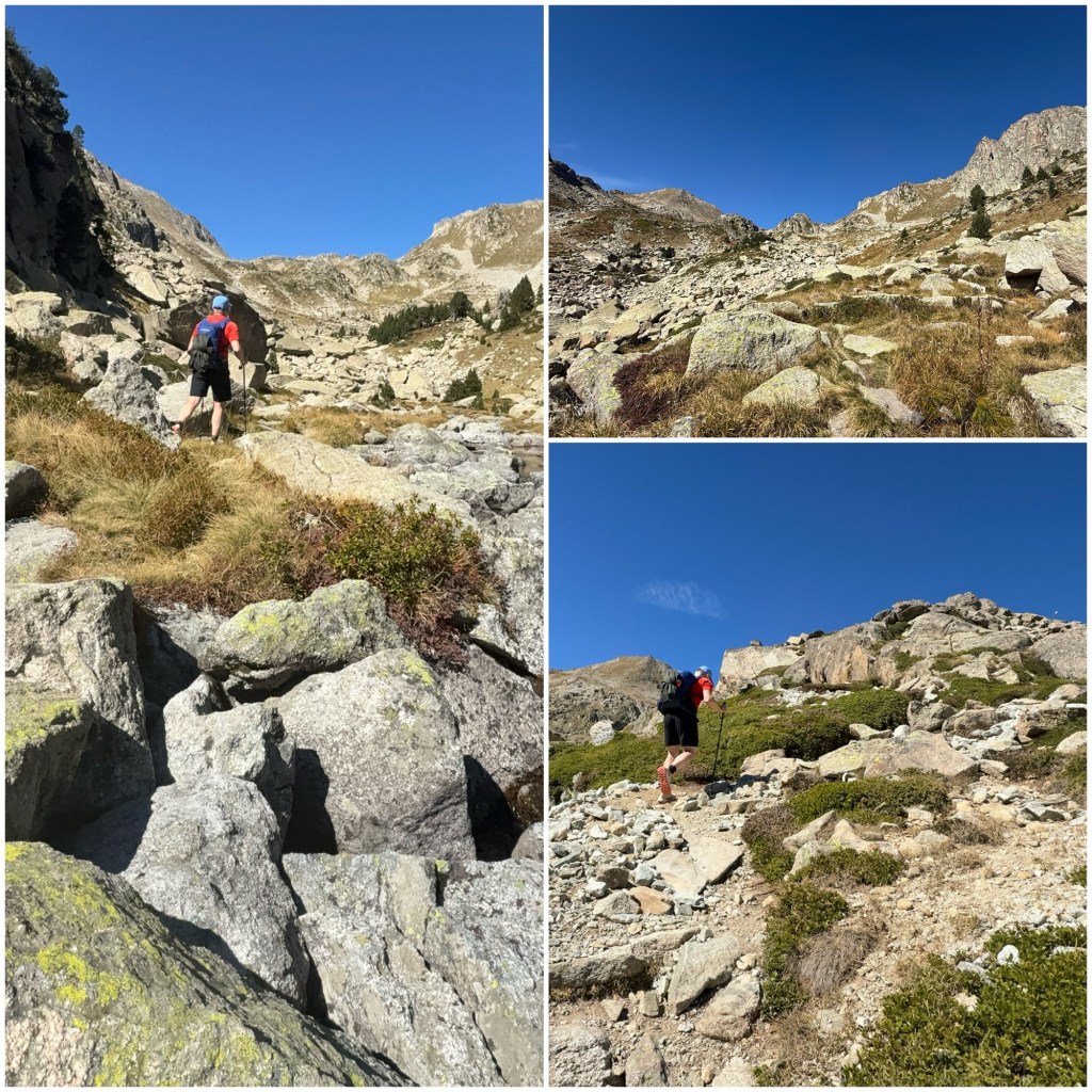 Para ello, desde el puerto hay que descender unos cien metros, pasar entre dos de los lagos (Mangades y Port de Caldes), y luego afrontar un nuevo ascenso hasta otro collado, que algunos mapas llaman Col de Oelhacrestada, aunque no me queda muy claro. Es duro, porque es un tipo de terreno en el que cuesta progresar, pero el ambiente es fabuloso.
