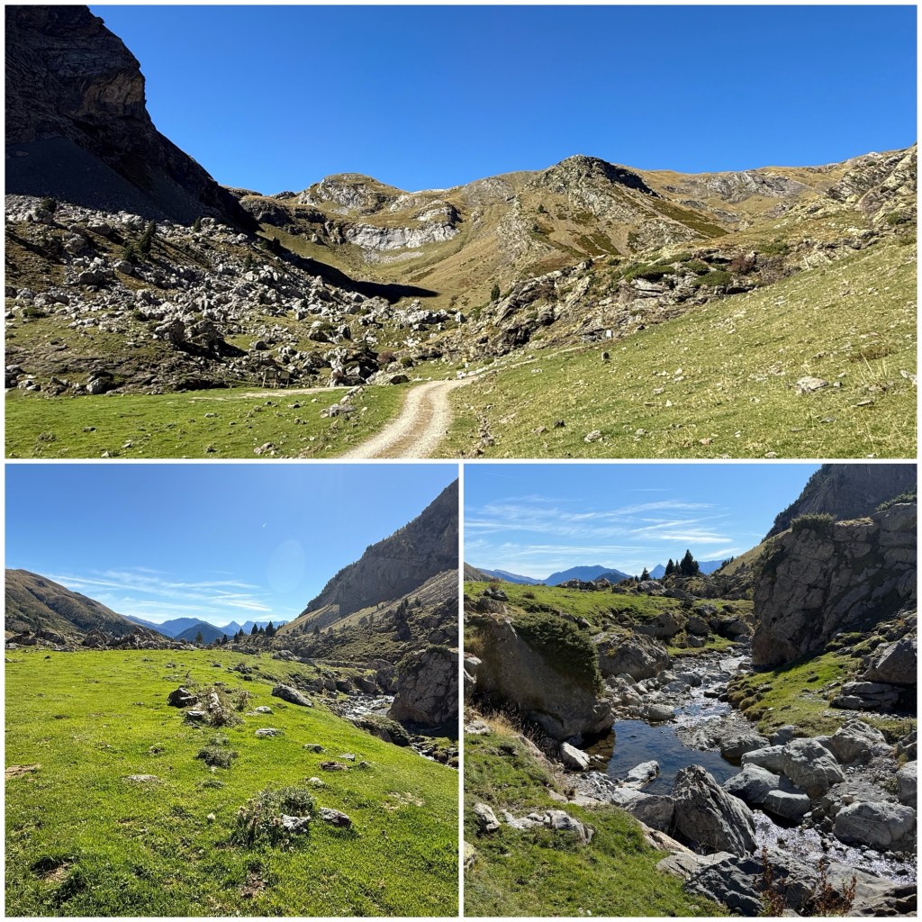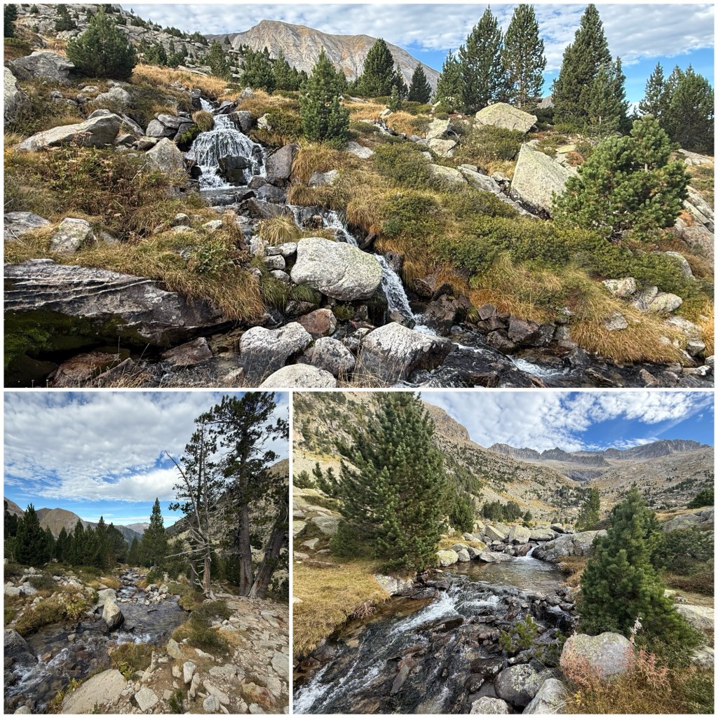 A medida que desciendo, los torrentes que bajan de todas estas montañas e ibones de los alrededores se van juntando en un riachuelo con algunas cascadas y paisajes muy bonitos.