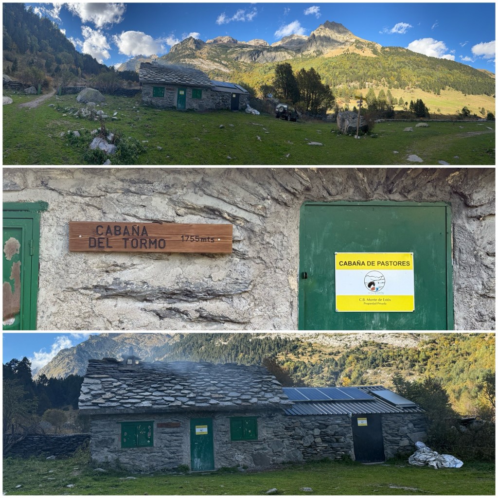 Llego a una cabaña de pastores, una de las muchas que hay en los Pirineos, pero esta es especial. En 1991 el grupo musical Celtas Cortos lanzó la que se convertiría en su canción más conocida, 20 de abril, y su estribillo decía: “¿Recuerdas aquella noche en la cabaña del Turmo? / Las risas que nos hacíamos antes todos juntos / hoy no queda casi nadie de los de antes / y los que hay han cambiado, han cambiado”. Es una canción melancólica que habla de la juventud perdida y de los amigos que se han ido separando con los años, y esta cabaña de pastores que tengo enfrente es precisamente la “cabaña del Turmo” de la canción (aunque unas veces aparece como Tormo y otras como Turmo). De todas formas, el autor explica que la historia es ficticia y que nunca hubo un grupo de amigos que pasaran la noche aquí, pero por alguna razón, de todos los escenarios posibles para ambientar su canción, eligió este remoto lugar.