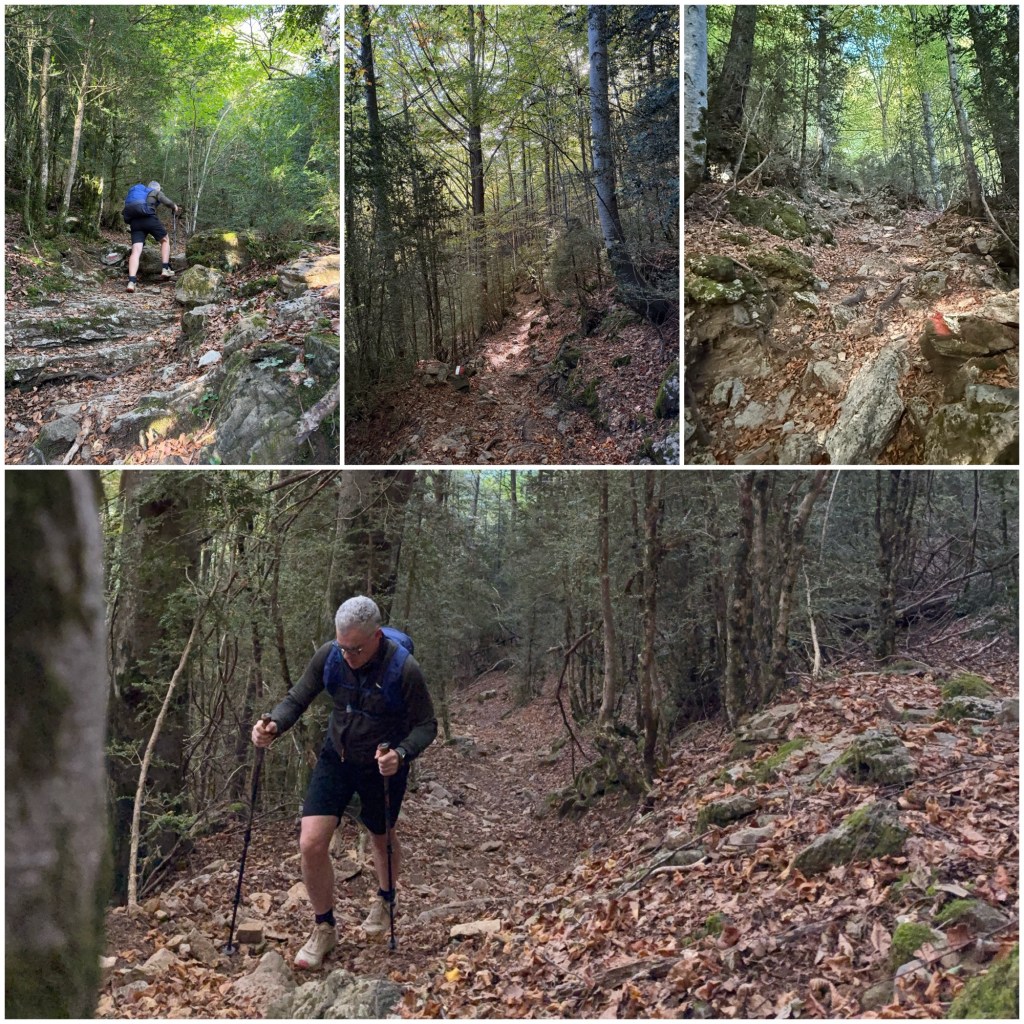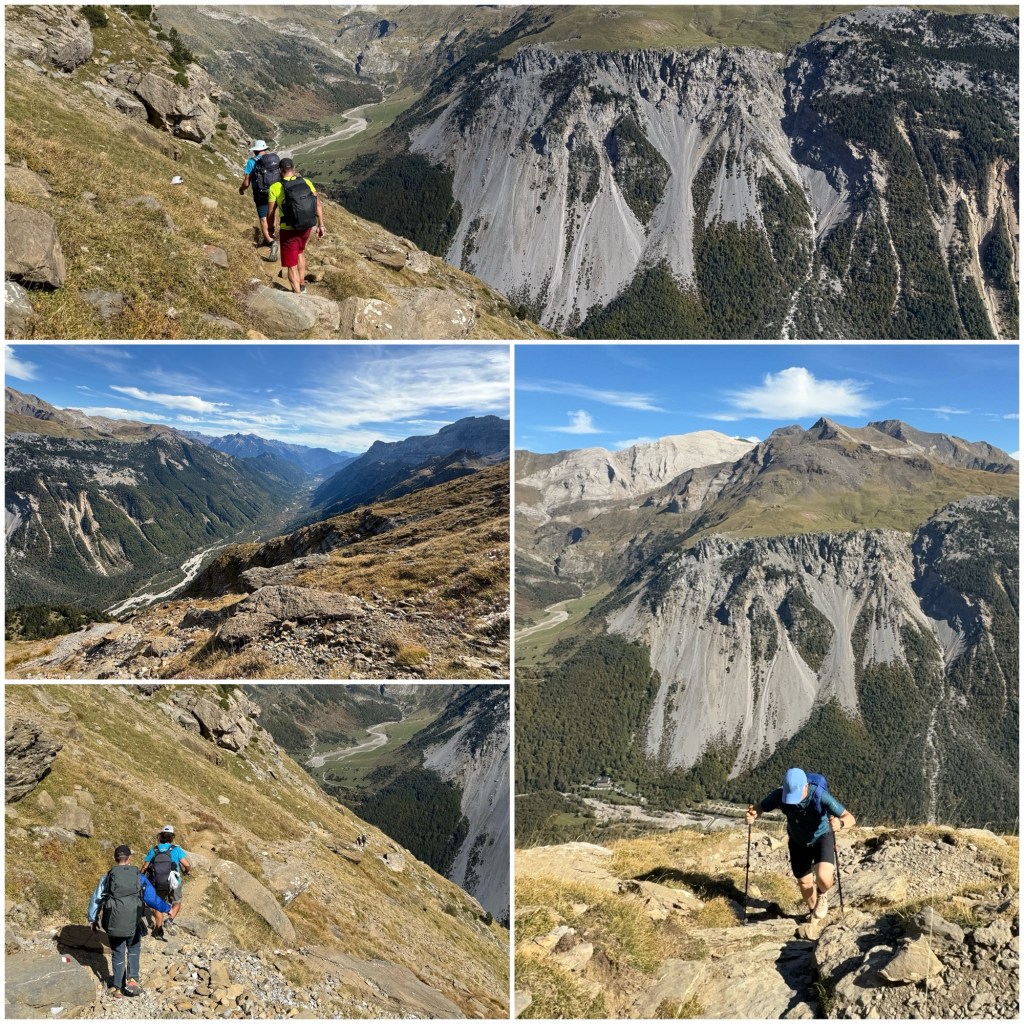 Aunque estos tramos existen, en la mayoría se puede caminar con normalidad, con la única dificultad de la fuerte pendiente. Una particularidad de este collado, comparado con muchos otros que se ascienden en el GR11, es que permanentemente se ve el fondo del valle, de donde procedo, y eso aumenta la sensación de subida inacabable.