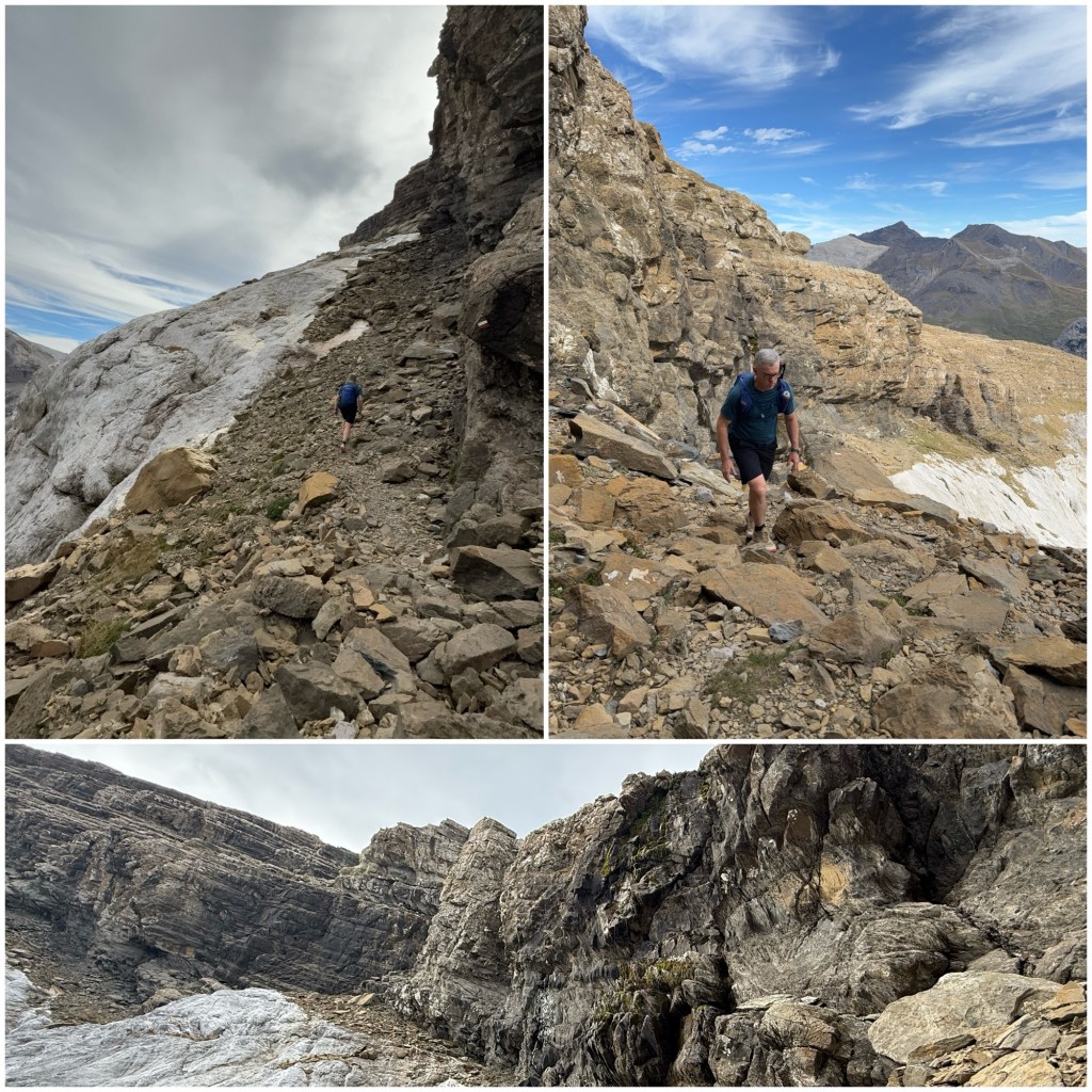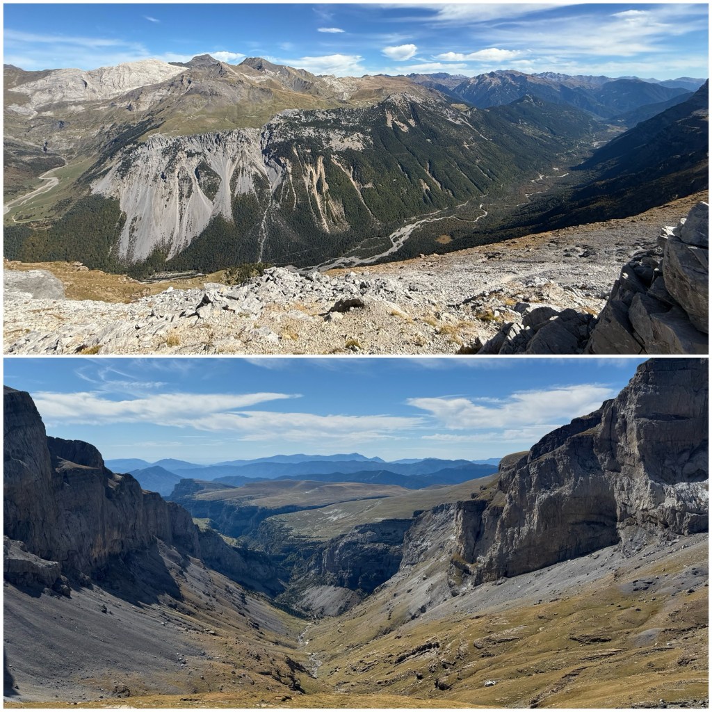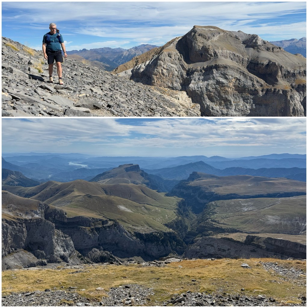 A medida que voy girando alrededor del Pico de las Olas y cambiando de vertiente, veo otra profunda hendidura en la roca en el terreno, es el Cañón de Ordesa, que he de descender mañana.