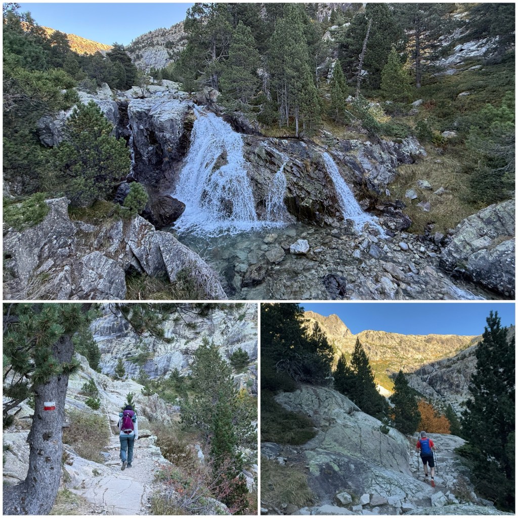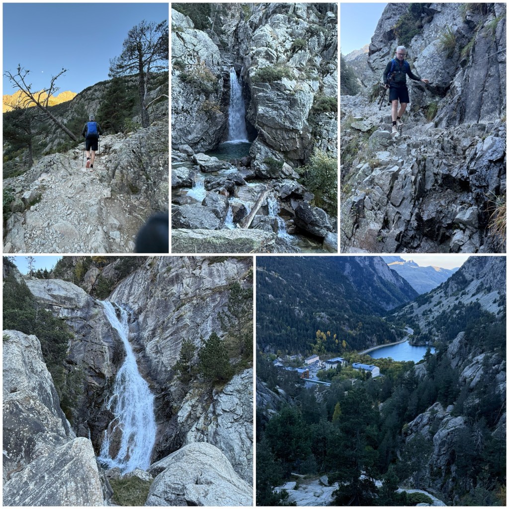 Desde los Baños de Panticosa, el GR11 empieza a ascender bruscamente por un sendero paralelo a un torrente. El riachuelo forma una serie de pequeñas cascadas y el recorrido es bonito, aunque duro. Enseguida se obtiene una vista del complejo turístico desde lo alto.