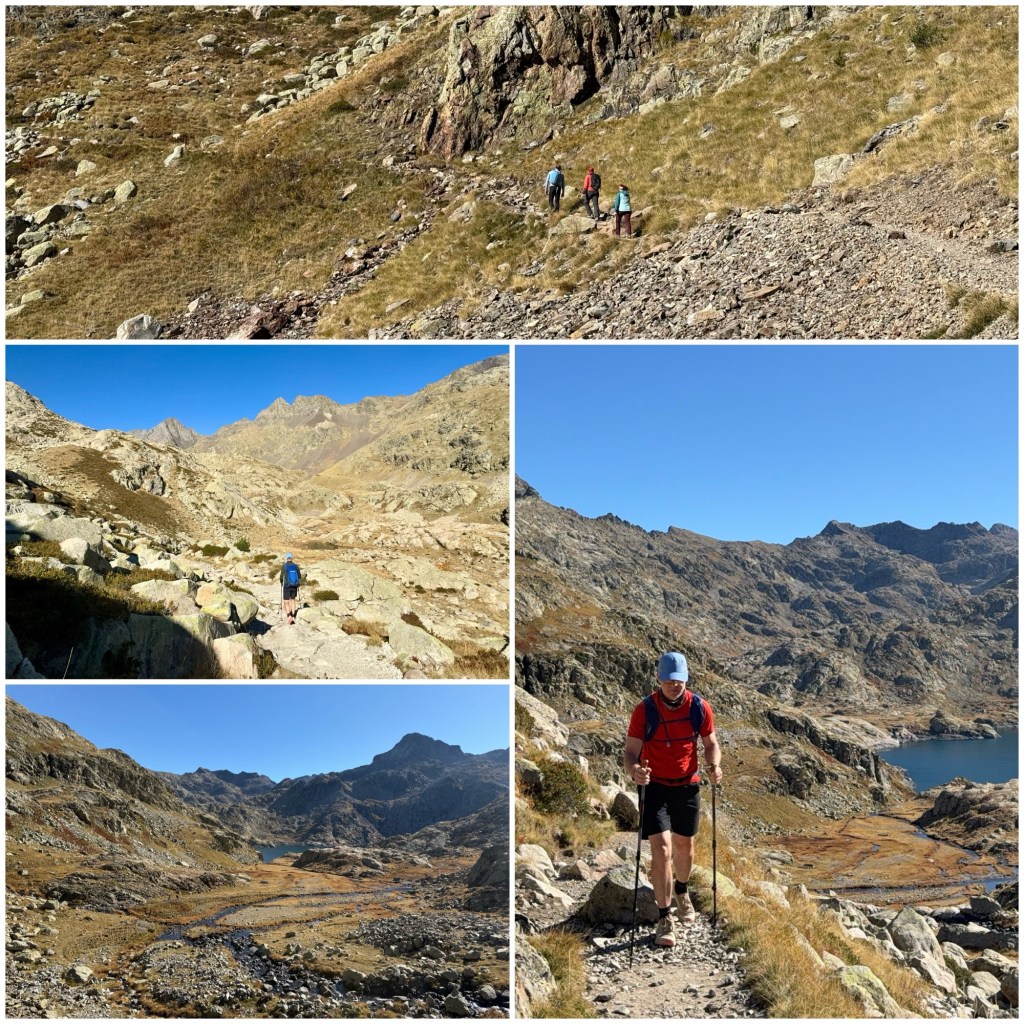 Desciendo hasta el fondo del Circo y me detengo un rato a descansar y a comer unas galletas. Enfrente tengo el collado que he de remontar a continuación, aunque como en otras ocasiones, de entrada no se entiende muy bien por donde hay que subir. Parece que no haya ningún paso sin tener que escalar, hasta que veo un grupo bajando y visualizo mejor el itinerario.
