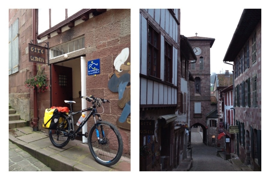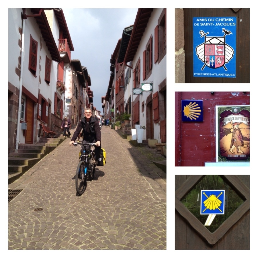 Una vueltecita por Saint Jean, bonita villa medieval amurallada muy ligada al Camino y donde confluyen varias de las vías europeas antes de entrar en la Península. El ambiente es 100% peregrino, hay gentes venidas de todas partes y, en las pocas horas que llevo aquí, ya he saludado o conversado brevemente con portugueses, italianos, alemanes, australianos, norteamericanos… Curiosamente aún no he visto ni un solo español y ni un solo bicigrino, todos son peregrinos a píe.