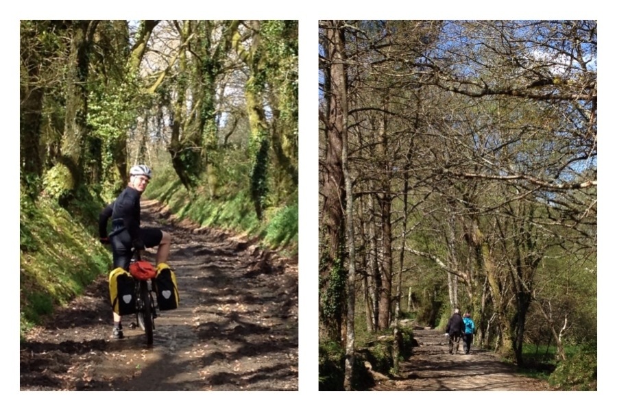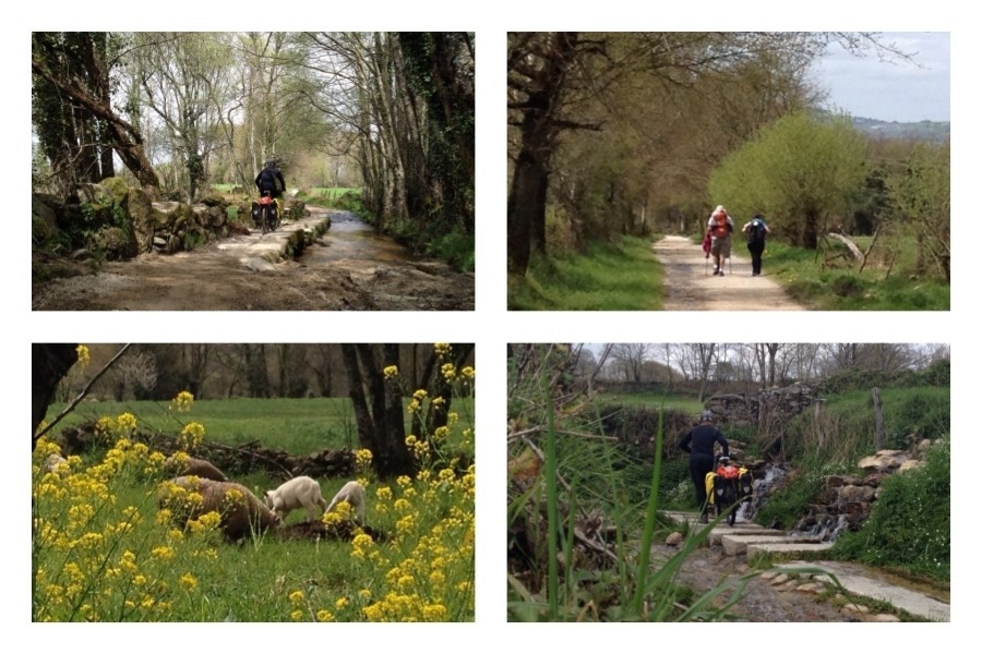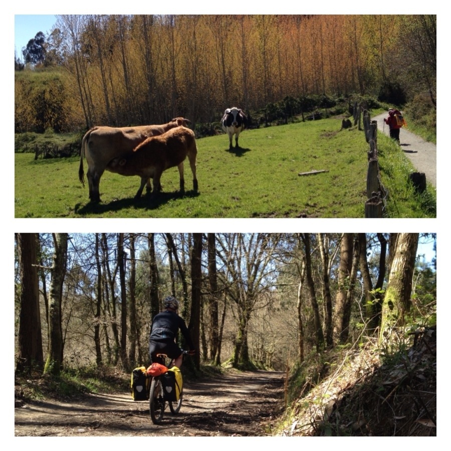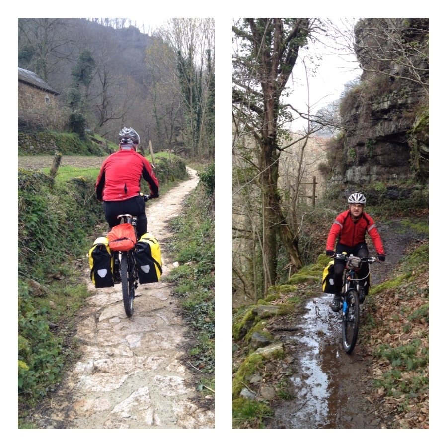 En algunos momentos el Camino se convertía en senderos estrechos. De vez en cuando había algún tramo muy pedregoso no ciclable y había que empujar la bici pero el ambiente y el paisaje compensaban con creces el esfuerzo.