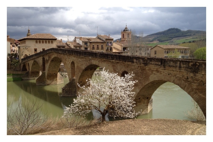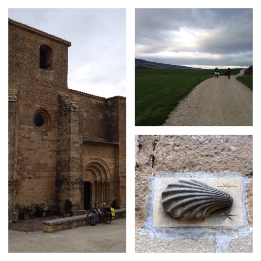 El camino continúa por senderos entre campos y atravesando poblaciones con bonitas iglesias: Uterga, Muruzabal, Óbanos… El paisaje sigue cambiando y aparecen las primeras viñas y, más tarde, olivos y almendros en flor. Los Pirineos ya son un recuerdo lejano. Por recomendación de Alberto, mi suegro, que hizo el Camino hace unos años, me desvío en Muruzabal para visitar la bonita ermita de Santa María de Eunate. El pequeño desvío de 2 km vale mucho la pena.