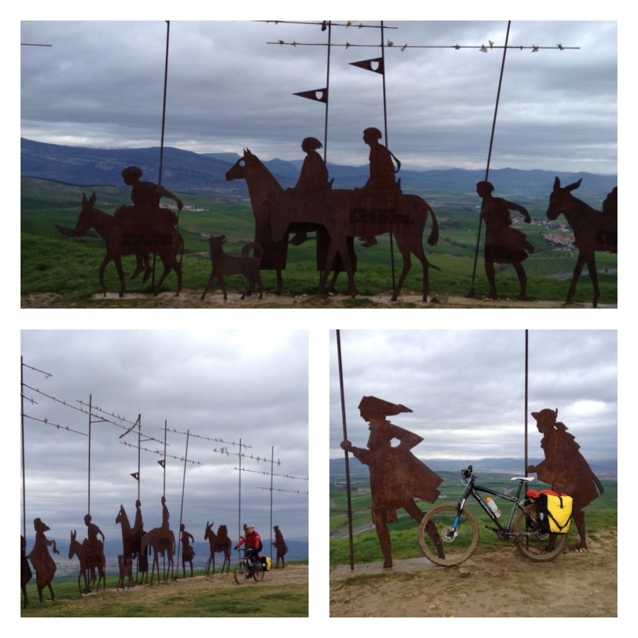 Una vez en el Alto, rodeados de aerogeneradores, encontramos el monumento que representa a peregrinos de todas las épocas.