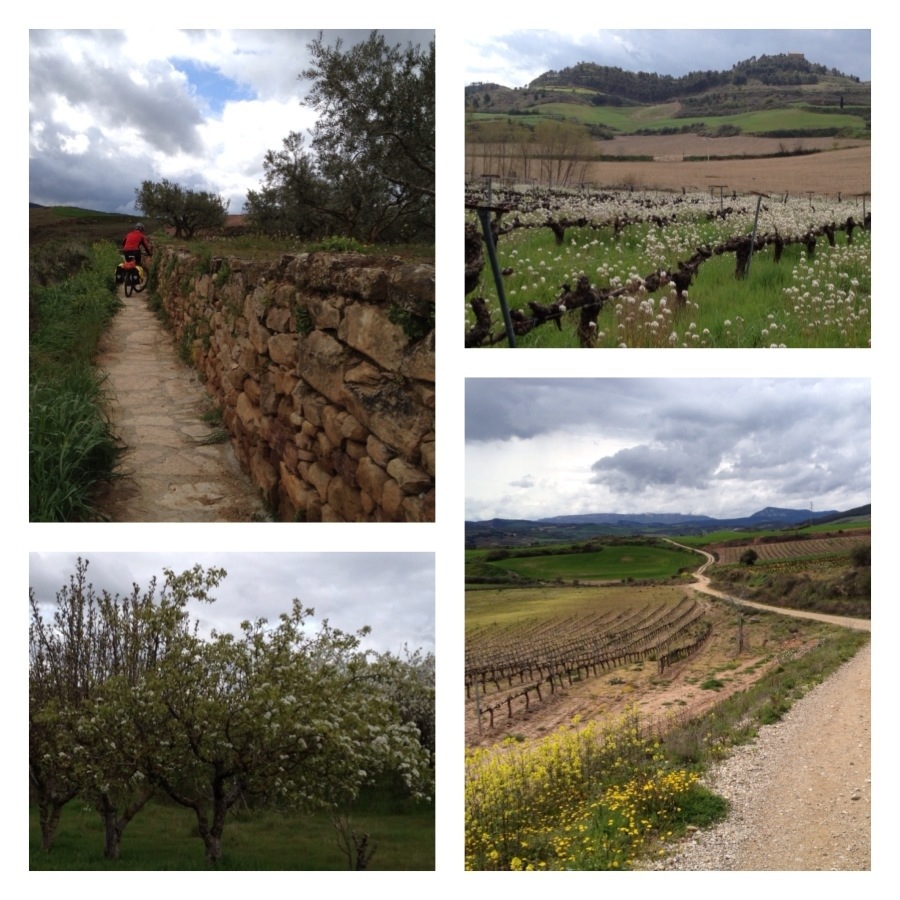 El resto del día se intercalan poblaciones como Torres del Río o Viana con zonas agrícolas, mientras se desciende hacia el Valle del Ebro. Las temperaturas son plenamente primaverales y en algunos momentos ha hecho bastante calor. Al contrario que los días anteriores el suelo está prácticamente seco y no hay barro y eso permite avanzar mucho más rápido y mantenerse mucho más limpio…
