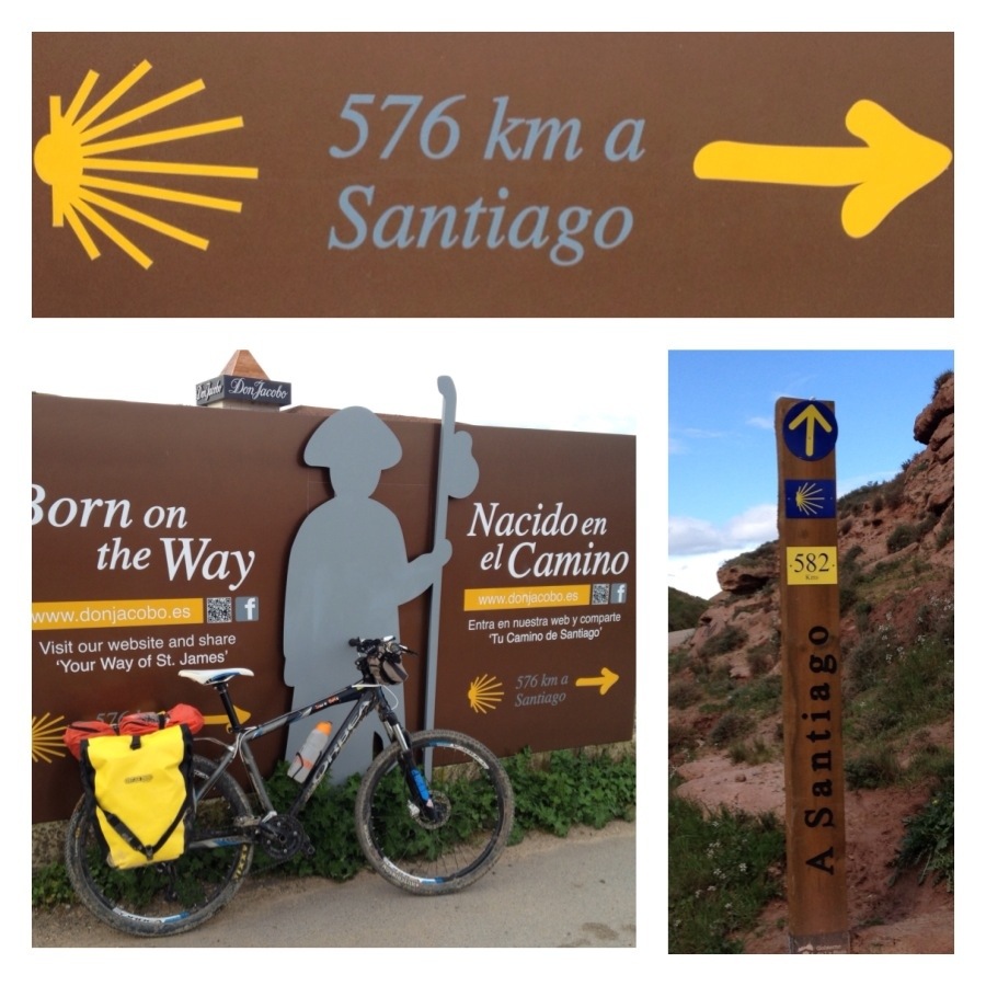 En un momento de la mañana, junto a una bodega he encontrado un cartel que señalaba «A Santiago 576 km». Bien, me he dicho, el otro día en Roncesvalles marcaba «Santiago 790 km», así que voy avanzando… hasta que 10 km después he encontrado otro que ponía «A Santiago 582 km». «Ohhh! Shit! Estoy retrocediendo… ¡me alejo de Santiago!» (Bien, no he dicho exactamente «Shit» pero para ponerlo por escrito en inglés quedaba más fino…).