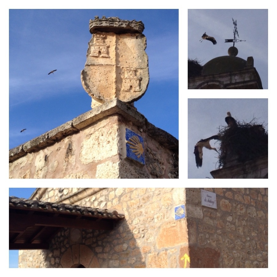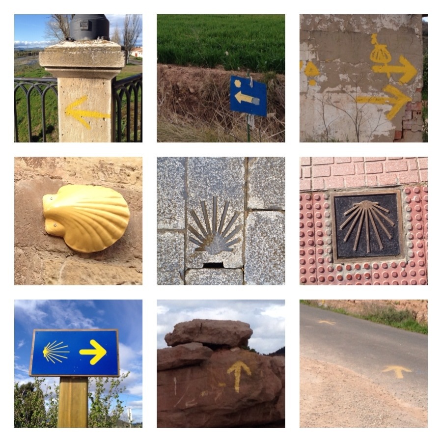 Y hablando de flechas, os comento la señalización del Camino: el recorrido se marca tanto con flechas como con las típicas conchas (creo que son vieiras) y hay para todos los gustos, desde las más elaboradas a las más caseras. Pintadas en el suelo, en los árboles, en las rocas, de madera, metálicas, placas incrustadas en el suelo, en un coche (bueno, de estas sólo he visto al friqui de antes)… En la práctica no hace falta ni GPS ni mapa. Es relativamente fácil de seguir y si alguna vez se duda es más por exceso (por haber varias alternativas señalizadas como al cruzar Navarrete) que por falta de indicaciones.