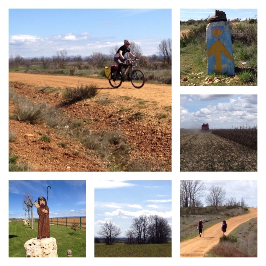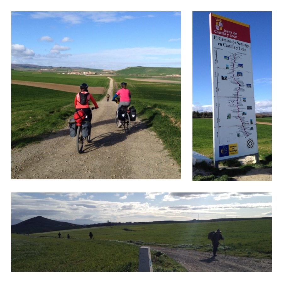 Hay otras maneras, claro: un día coincidí con dos ciclistas junto al impresionante puente medieval de Hospital de Órbigo. Hablé unos minutos con ellos, les pedí que me hicieran una foto y a continuación me ofrecí a hacerles una a ellos. Dijeron que sí sin mucho interés y comentaron que sería la segunda que harían en los cinco o seis días que llevaban. Me preguntaron en qué pueblo estaban. Reconocieron que no sabían donde estaban, ni qué era ese puente, ni por qué catedrales pasaban… lo único que les interesaba era ir en bici. En broma les dije que podrían estar dando vueltas a un circuito y para ellos sería lo mismo… y estuvieron de acuerdo conmigo. Bien, no critico lo que hacen los demás, solo lo pongo como ejemplo de que hay muchas formas de hacer el Camino. La de ellos es absolutamente respetable pero no es la mía… Yo he hecho bicicleta de montaña, sí, pero eso ha sido sólo una parte de la experiencia, completada con muchas más cosas.