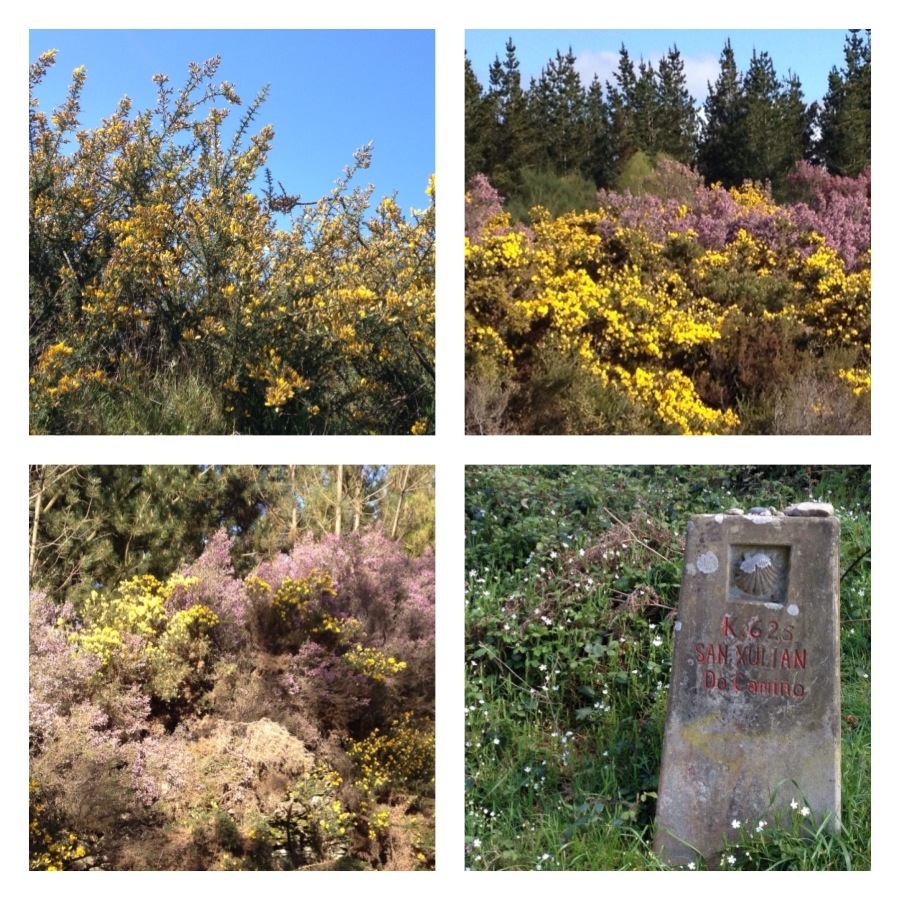 Parecía el día de las flores. Están por todas partes, especialmente unas de color amarillo. He preguntado a una señora y me ha dicho que era «toxo». He buscado después y en castellano es tojo. Parece ser la flor más característica de Galicia e incluso existe el dicho «O toxo sempre está en flor en Galicia». El motivo es que hay tres variedades de «toxo» y cada una florece en una época diferente del año. Por eso en todo momento se encuentran flores amarillas en el campo.