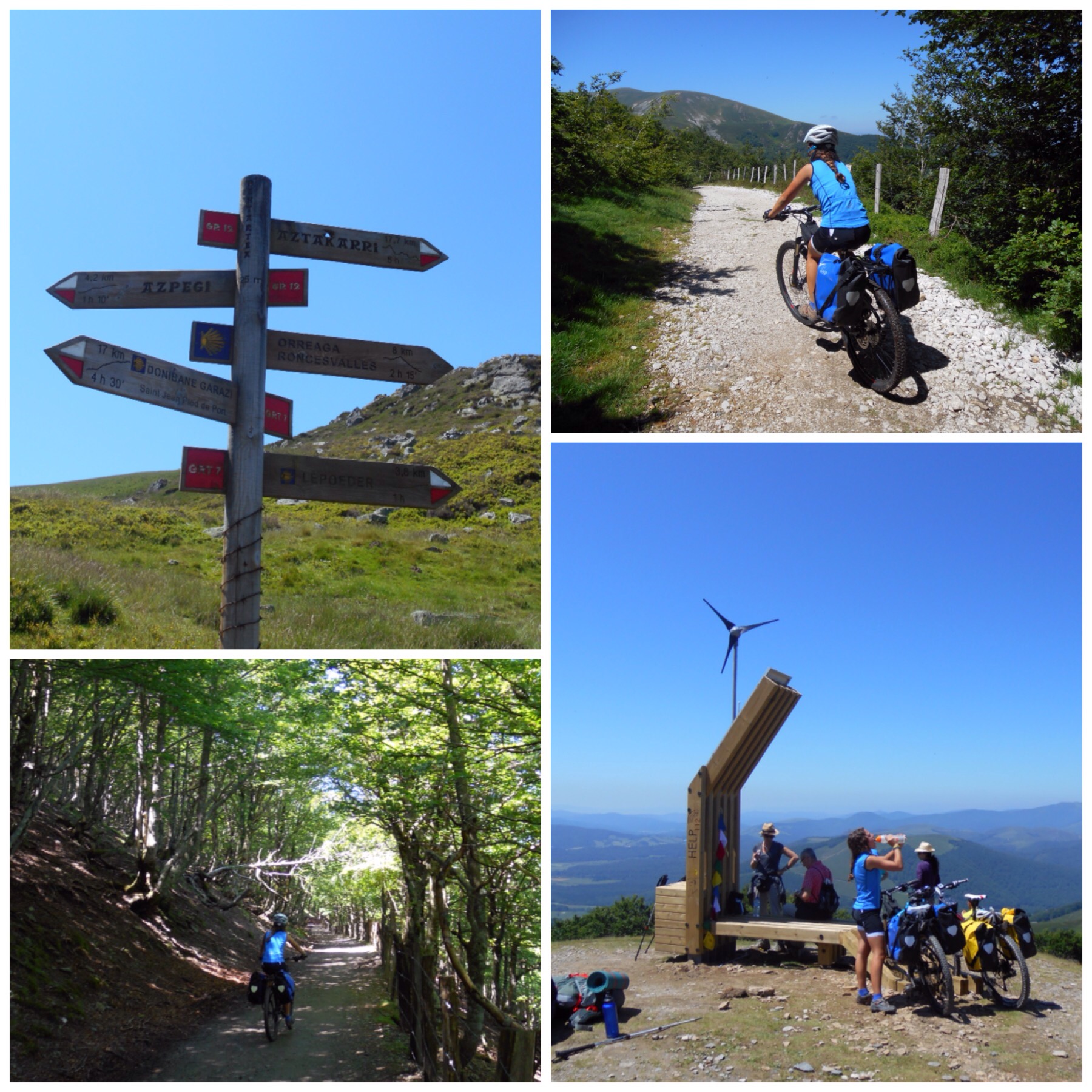 Más caminos entre bosques y algún sendero pedregoso que nos hace empujar la bici a ratos y coronamos el segundo alto del día, el de Erro. Desde aquí teóricamente es casi todo bajada hasta Pamplona.
