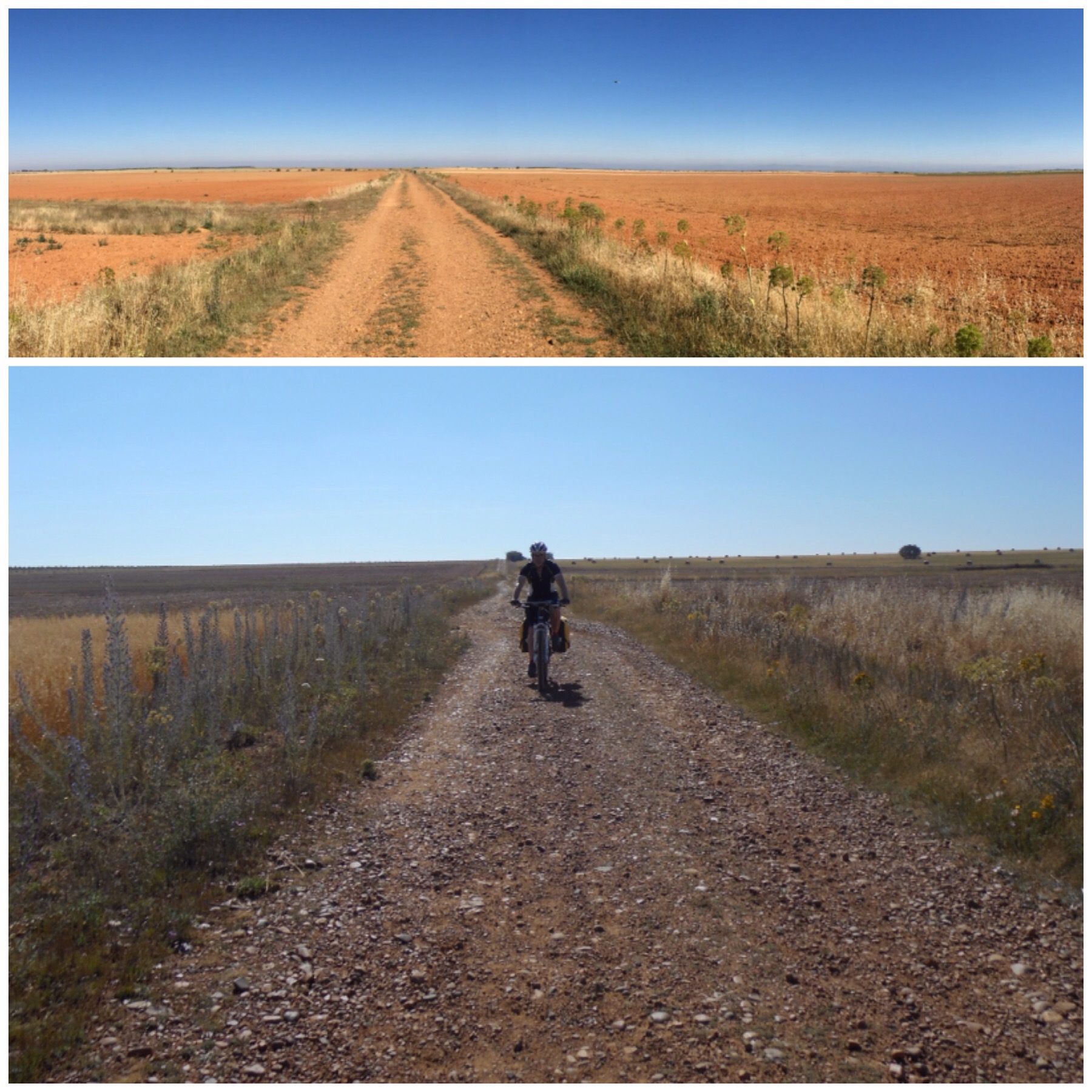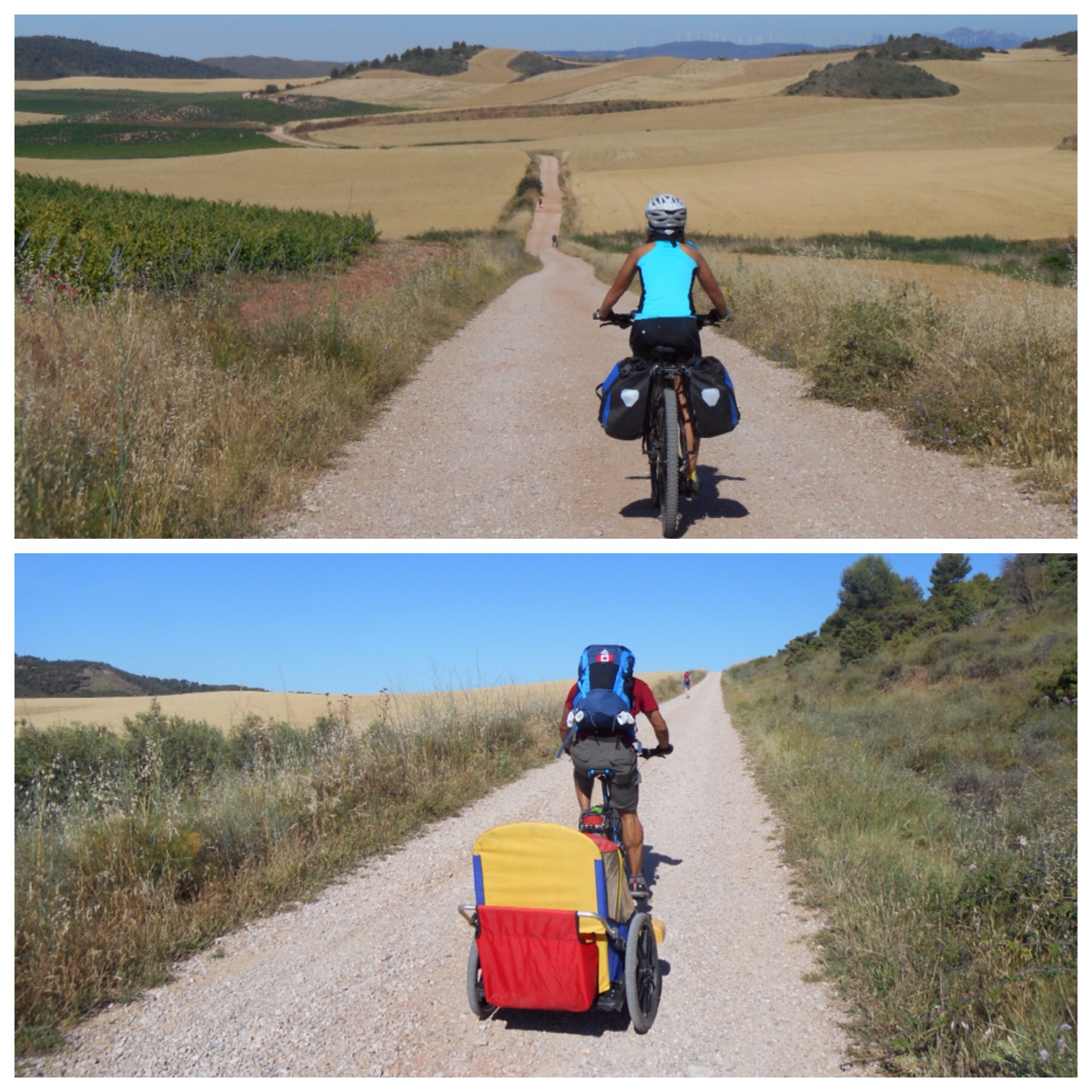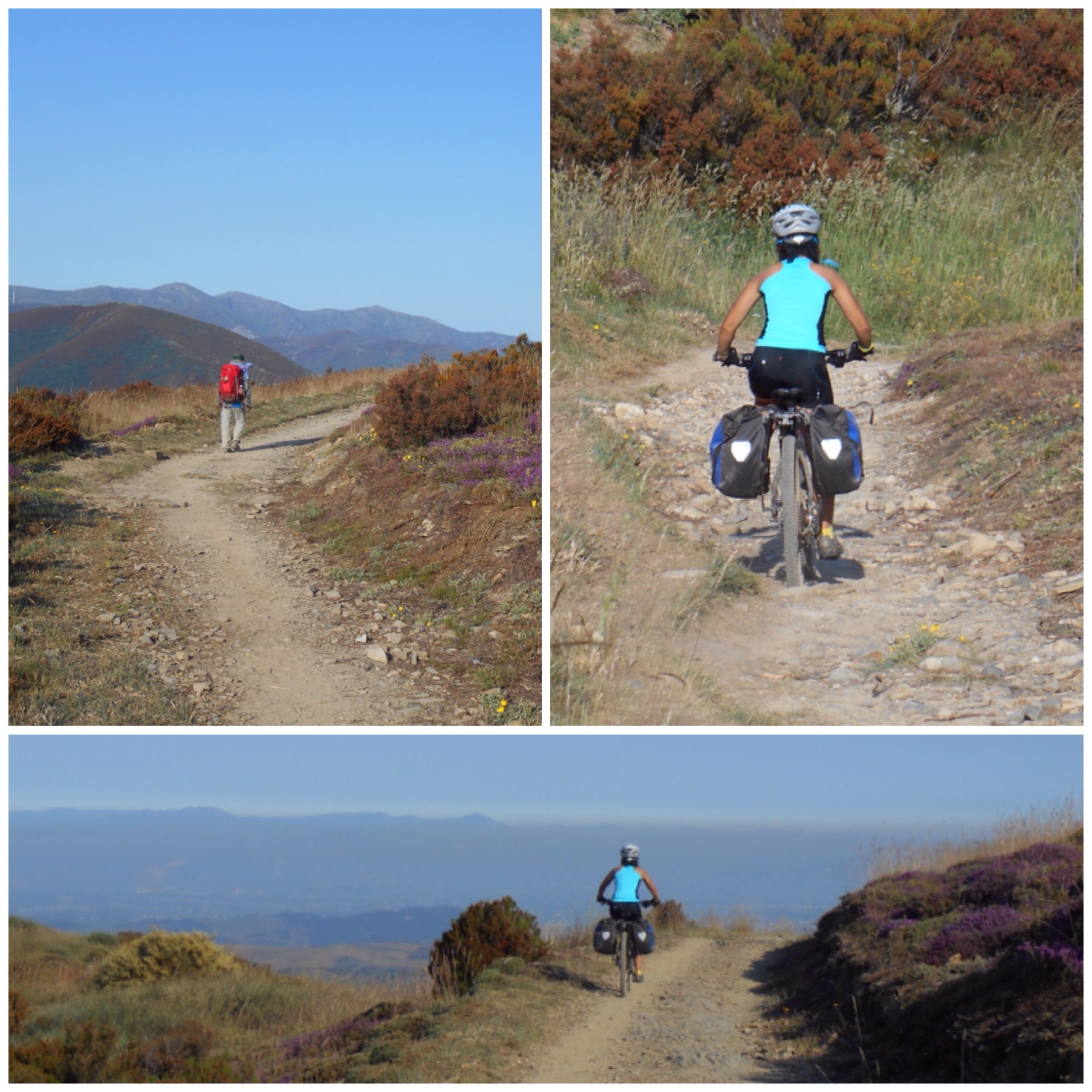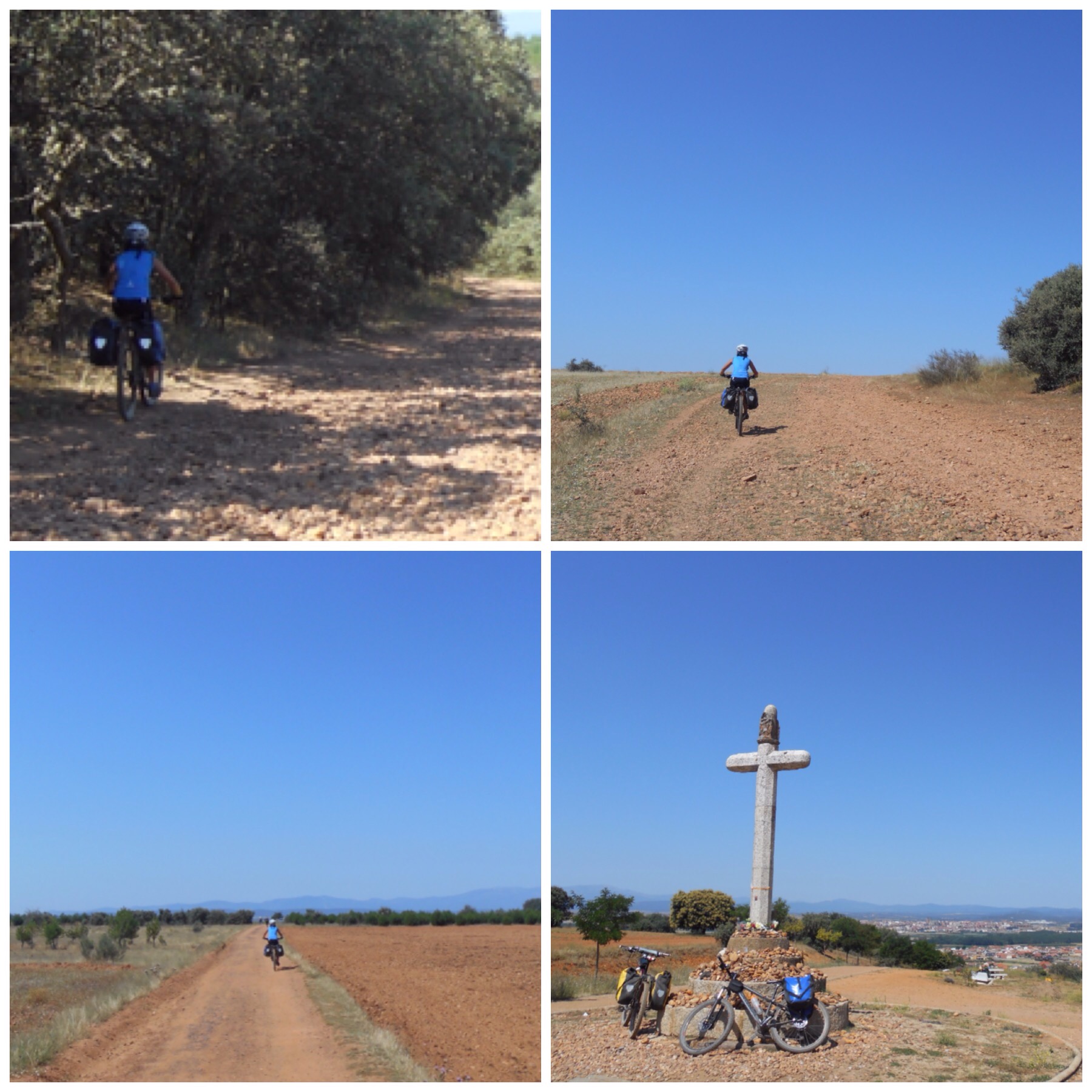 Yo lo hice después de vosotros, la segunda quincena de julio de 2015. En el blog que dediqué a mi viaje, recalqué que había tramos que era mejor no hacerlos por camino si se cargaba con alforjas. Había leído mucho sobre ello y había comprobado en vídeos que parecía lo mejor. Solo unos pocos osados dejaban muestra de bajar El Perdón o La Cruz de Ferro por el camino llevando alforjas en la bici.