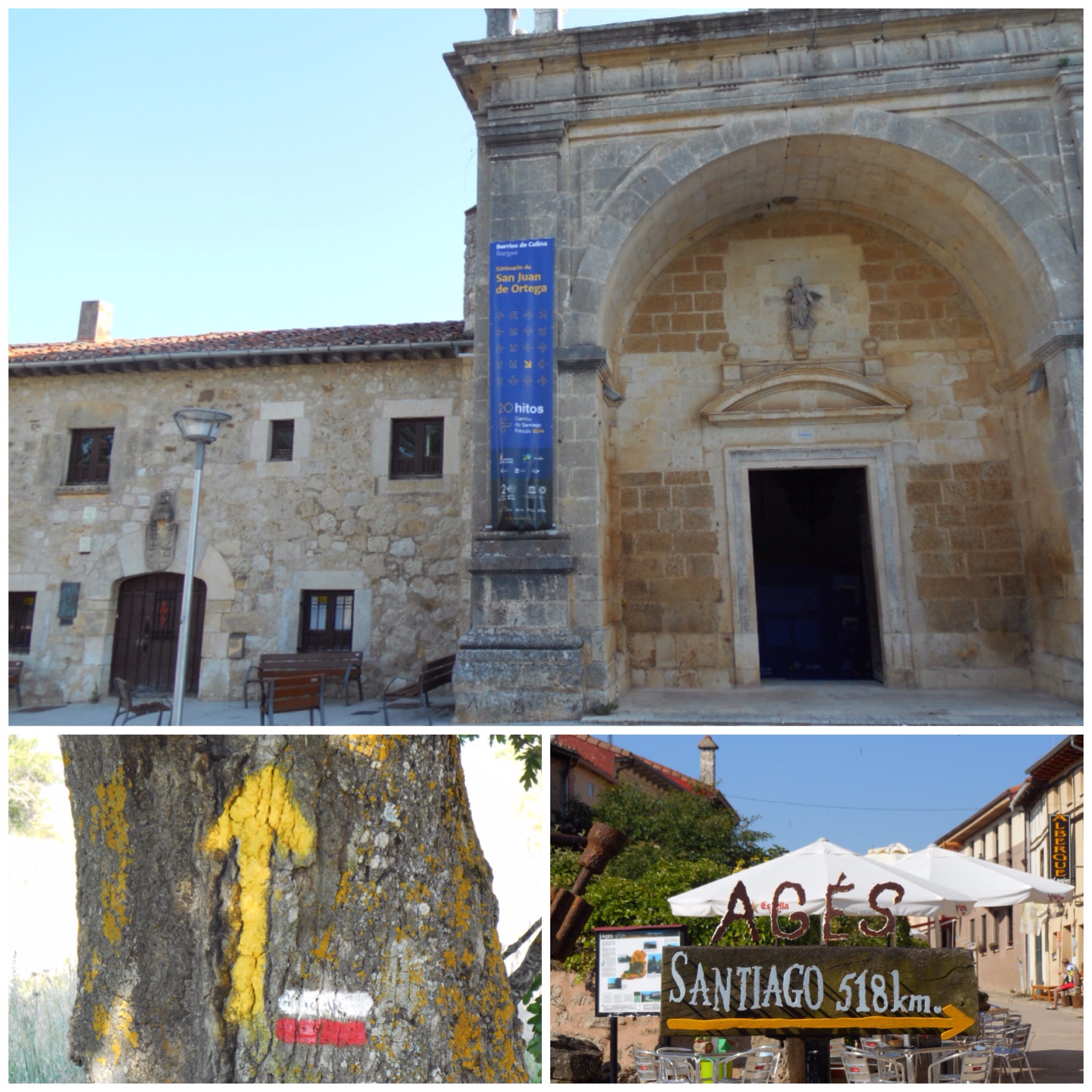 Un descenso rápido y llegamos al Monasterio de San Juan de Ortega, donde paramos en un bar. Son las nueve de la mañana y llevamos ya la mitad de la etapa que habíamos previsto. Al salir del Monasterio seguimos descendiendo y cruzamos los pueblos de Agés y Atapuerca desde donde iniciamos el segundo ascenso del día.