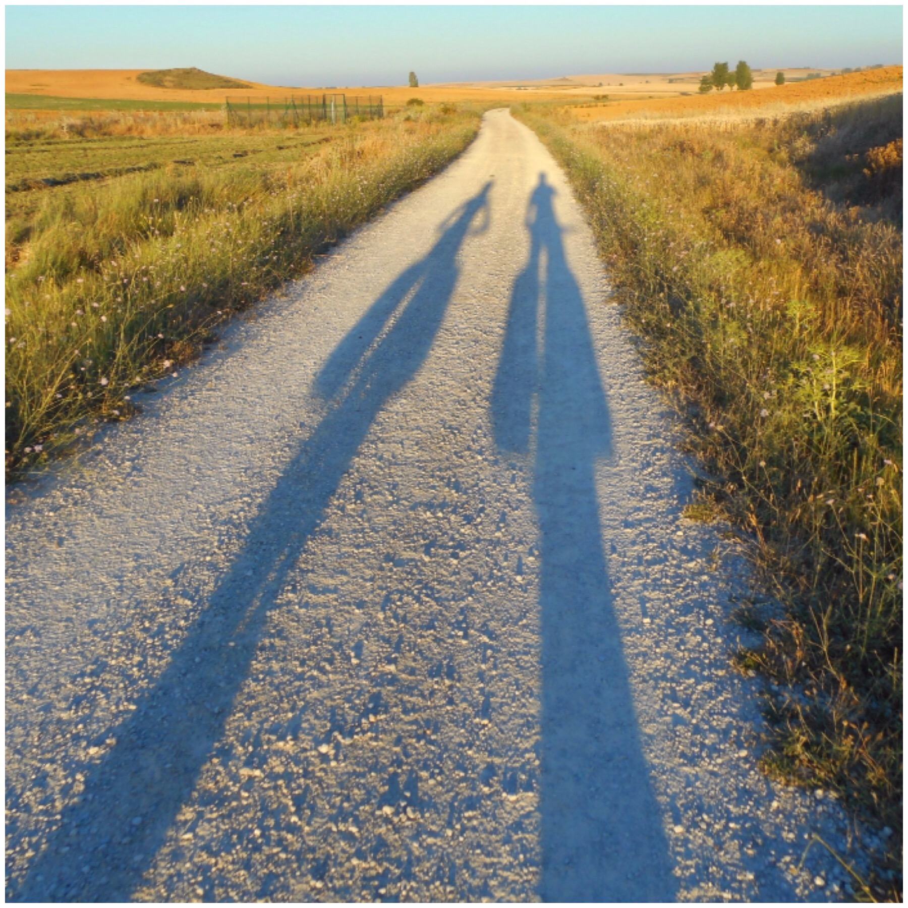 Es una zona solitaria en la que una gran parte de los campos ni siquiera están cultivados por lo que no hay ni el movimiento de maquinaria agrícola que se ve en otros lugares. A los caminantes que adelantamos les quedan unas cuantas horas de marcha solitaria bajo el sol.