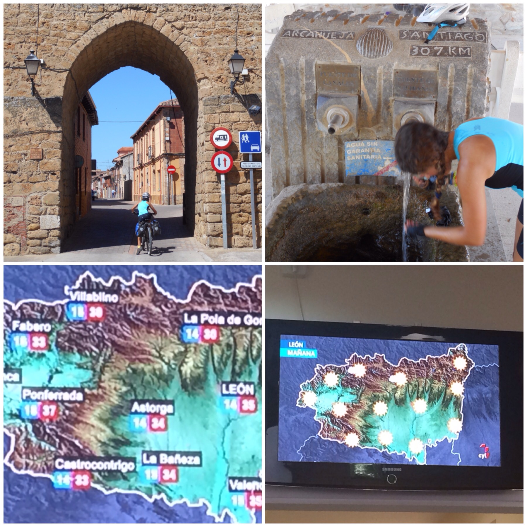 Nada más salir de Astorga empezamos a ascender de forma progresiva para ir acercándonos a los Montes de León. Como cada día, los últimos 20 o 25 km son durísimos a causa del calor. En cada pueblo paramos a beber algo o a refrescarnos en alguna fuente y parar un rato a la sombra. Así, pueblo a pueblo, vamos avanzando hacia el destino, en el caso de hoy en Rabanal del Camino. Mañana, por fin, vuelven las montañas. Ya teníamos ganas después de las interminables llanuras de la Meseta.