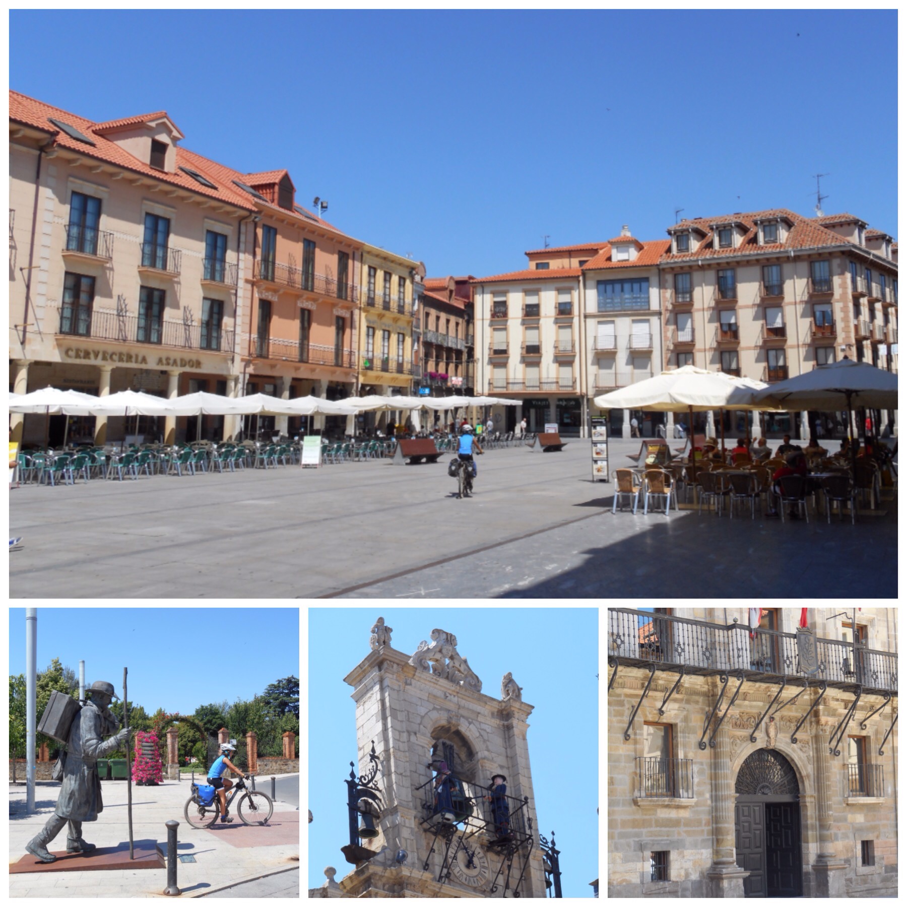 En La Plaza Mayor de Astorga hemos parado en un bar a comer algo. Astorga era el destino de todas esas vías romanas que hemos pisado los días anteriores y también es donde la Vía de la Plata que viene desde Sevilla se junta con el Camino Francés.